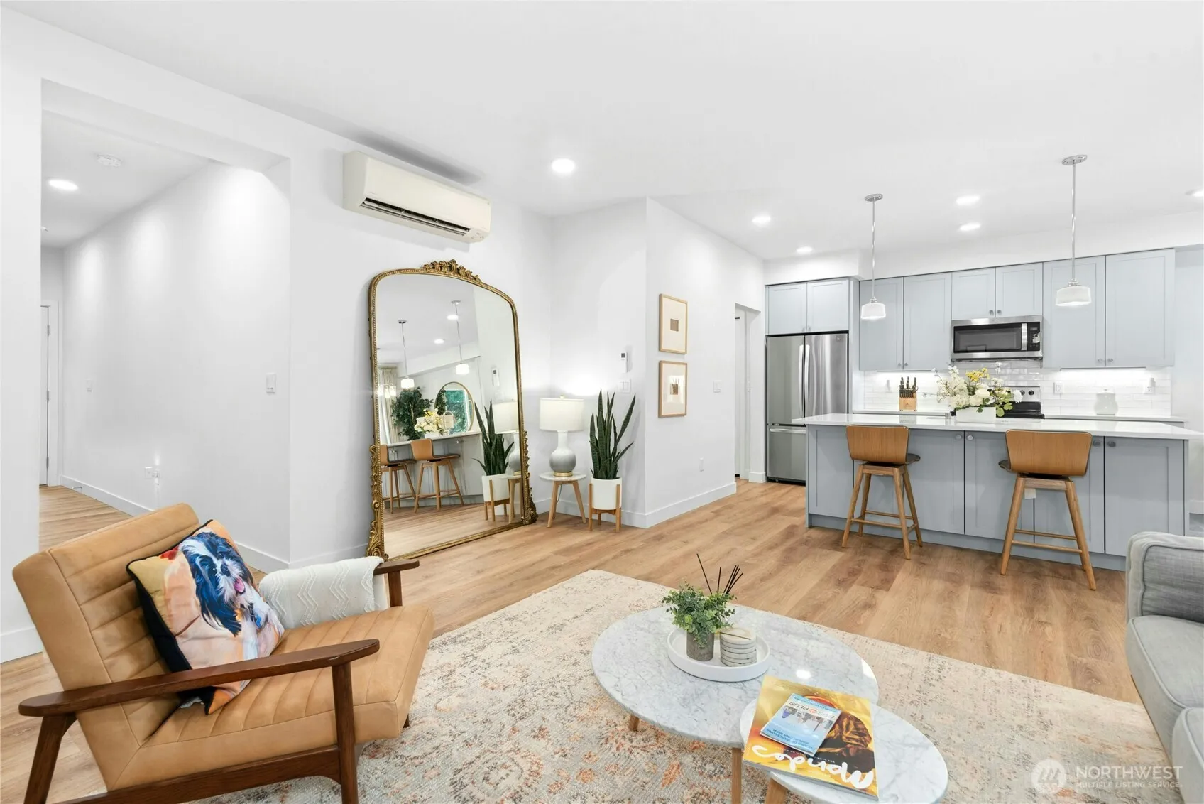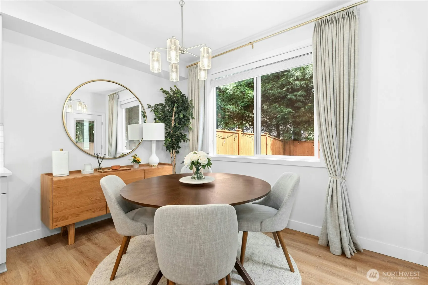 You will love coming home to this immaculate luxury end-unit townhome with lots of privacy in the best location in the complex. Better than new, built 2022, feels like a 2-story home with spacious rooms throughout, almost 2000 sq ft, and a private backyard! Features include designer finishes throughout, solid slab quartz countertops, soft-close cabinetry, wood wrapped and painted millwork, great room with cozy electric fireplace with heater, mini split air conditioning in main level and primary bedroom, double-doors and walk-in closet for primary bedroom, heated floors in primary bath, utility room with sink and generous counter space with cabinets, extra storage space in coat closet, and more! Dining room back door leads to patio and good sized fully-fenced level yard with new sod. 2-car garage plus space for 3 cars in driveway. All appliances are included. Great location close to Martha Lake, Mill Creek Town Center, Alderwood Mall, Costco, shops, restaurants, etc. Easy access to I-5 and 405 freeways and Park-N-Ride. Quality home built by J.M. Murphy Inc. Welcome home!