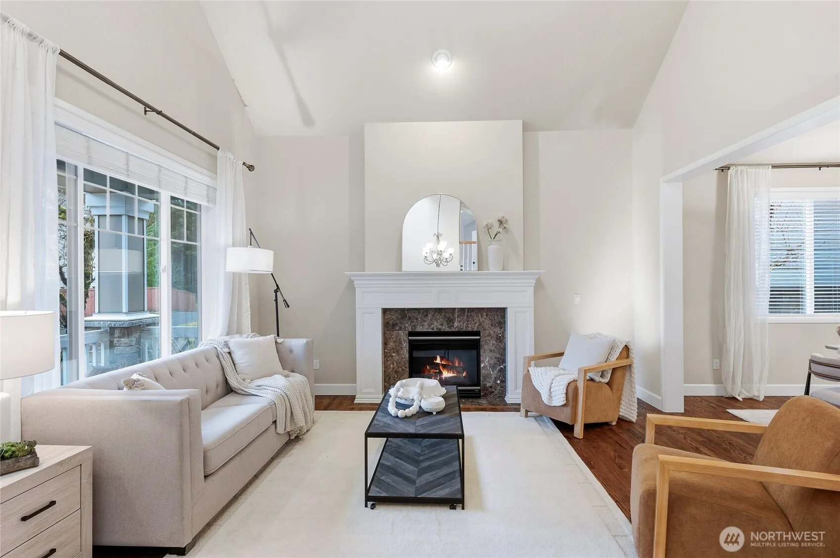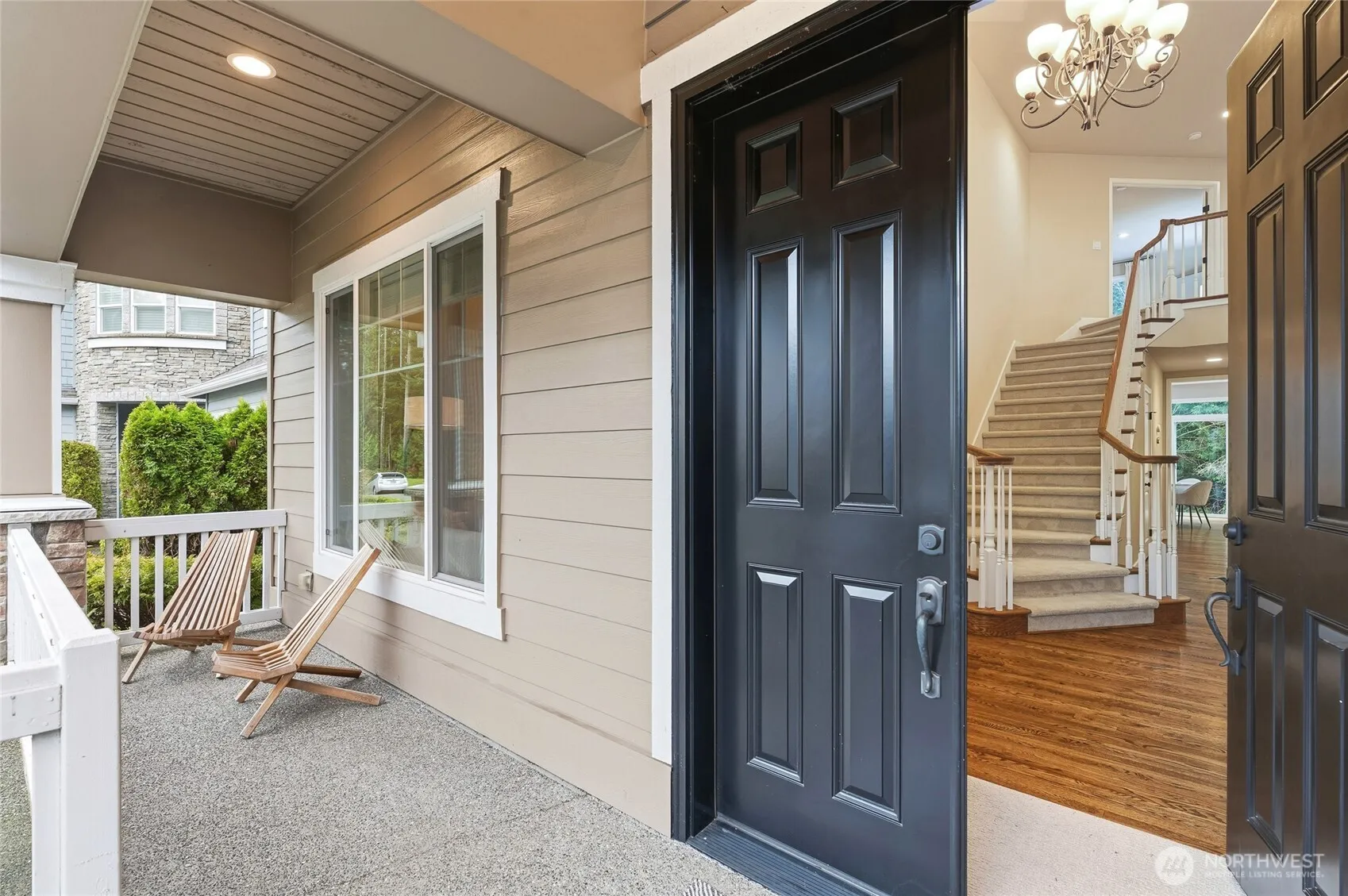 Tucked against a protected greenbelt in Redmond Ridge’s coveted Parkside enclave, this Murray Franklyn home offers rare privacy and a versatile layout designed for modern living. A covered front porch and dramatic two-story entry with a sweeping curved staircase set the tone. The open-concept kitchen features granite counters, stainless steel appliances, gas range, walk-in pantry, and custom lighting—flowing seamlessly into the family room with built-ins and gas fireplace. Formal living and dining spaces, connected by a butler’s bar, provide ideal flexibility for entertaining, with the formal living room offering an additional fireplace. A main-level bedroom with ensuite bath and walk-in closet is perfect for guests or multi-generational living. Upstairs, the spacious primary suite captures peaceful greenbelt views and includes a five-piece bath and room for a sitting area. A dedicated media/rec room with projector and screen creates the ultimate movie night experience, along with three additional bedrooms, including one ensuite. Enjoy a low-maintenance backyard with paver patio and gas firepit—perfect for relaxing or entertaining. Located in the highly regarded Lake Washington School District and just minutes to parks, trails, golf, dining, and major employers.