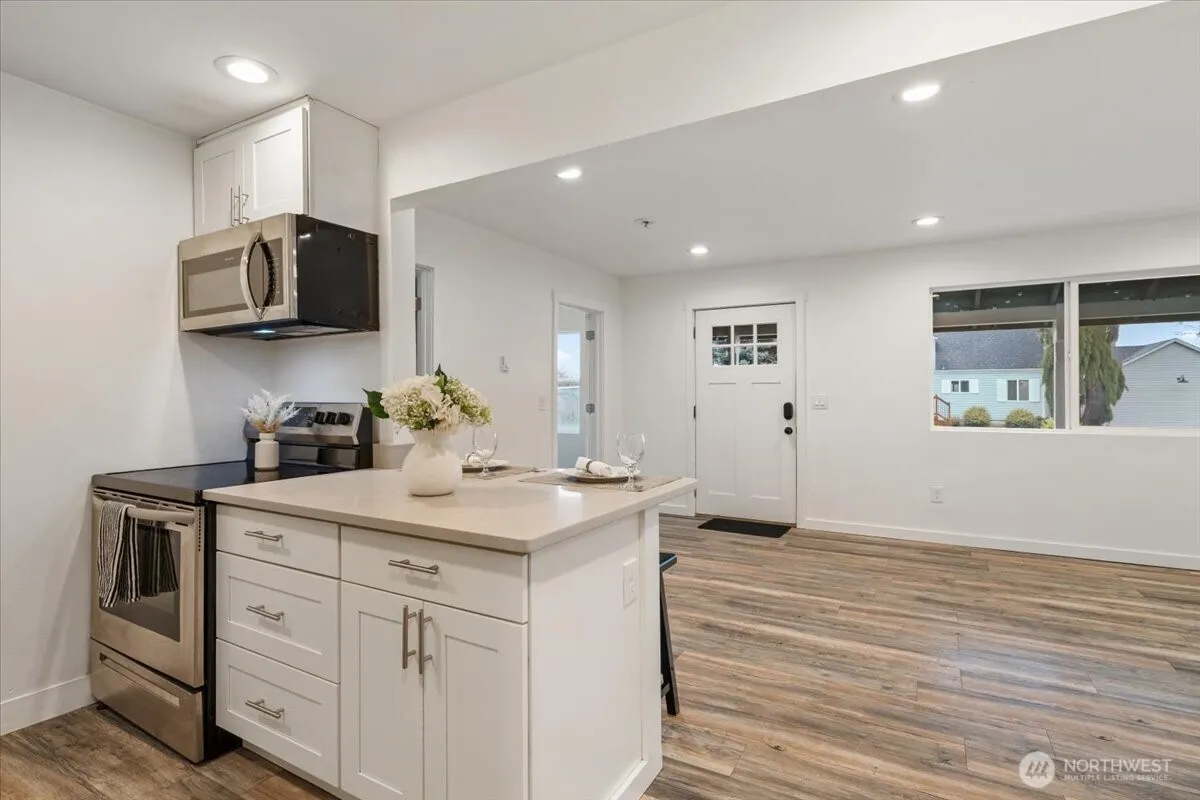 **Improved Price** Great opportunity to own a charming 3 bed 1.75 bath rambler in the heart of Buckley! This 1,120 sq ft home has been tastefully updated. Light and bright living area greets you when you walk in. Kitchen includes SS appliances, quartz counters and adorable lighting. Spacious, primary suite with vaulted ceilings and two closets. Updated ensuite bath features beautiful tile and spa like ambiance. Newer laminate flooring in primary, updated wiring and panel, updated plumbing. Fresh interior paint and newer roof. Close to walking, hiking, shopping, schools and parks. Don’t miss this wonderful opportunity to call this home!
