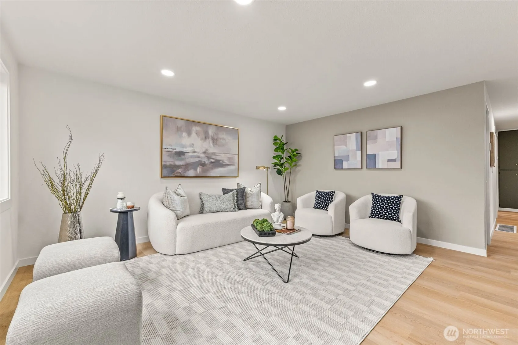 Welcome to a home designed for connection. This beautifully remodeled 2-bedroom offers an open and inviting layout, anchored by an oversized kitchen with quartz countertops, stone backsplash, and plenty of room to gather. The expansive living and dining spaces flow effortlessly, making entertaining easy and everyday living feel spacious and comfortable. A large laundry room provides added flexibility for storage and organization. Thoughtful updates throughout include new windows, a new roof, fresh interior and exterior paint, Life proof LVP flooring, and updated millwork and doors – offering peace of mind for years to come. Out back, enjoy a charming patio strung with lights – perfect for unwinding or hosting under the stars. Ideally located in the heart of Auburn with quick access to both Seattle and Bellevue.