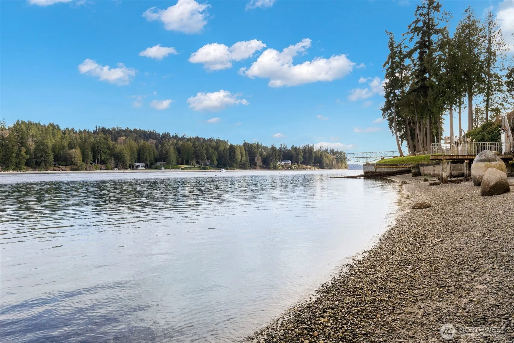 Straight out of a book, this stone cottage has 50ft of Agate Pass low-bank waterfront. Great natural light from the skylights and large picture windows with sound and mountain views. A balance of stone and warm natural wood accents throughout, including the vaulted ceiling. Main floor includes kitchen, great room, and primary bedroom. Upstairs is a smaller bedroom and separate loft area. Daylight basement includes a large second living room, guest bedroom, 3/4 bath, & utility room. There are cozy fireplace inserts in the stone chimney on the main and lower levels. Deck has beautiful water views, perfect for your morning coffee while the side stone patio is set up with a built-in BBQ for peaceful evening dinners. Private level yard with mature landscaping gives the property privacy and a secret garden feeling. The multi-level deck and stairs lead down to the waterfront & bulkhead. Did you even know your secret wish was for a greenhouse on the water? Close to Kingston and Bainbridge ferries. So come live in your very own fairy tale just in time for summer!