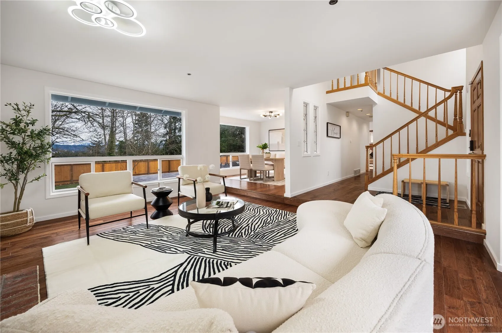 Don’t miss this opportunity to live in the coveted Grass Lawn neighborhood. Surrounded by million-dollar homes, this beautifully remodeled gem sits at the end of a private setting on a 12,000+ SF pancake flat lot with mountain views. A soaring entry welcomes you into a thoughtfully updated home (over $150K devoted) that blends style and functionality. The open living room flows seamlessly to the dining area and brand-new kitchen overlooking the spacious backyard. A cozy family room sits adjacent to a quiet den/office. Upstairs, the grand primary suite features a spa-like bath, perfect for relaxing and unwinding. Two additional bedrooms and a full bath provide comfortable space for household members. Outside, enjoy the huge flat yard with a newer large patio, new grass, new fencing, and beautiful mountain views. Recent updates include new interior and exterior paint, roof (2021), water heater (2024), and new cooktop. Unbeatable heart of Redmond location close to SR-520, I-405, Grass Lawn Park, Microsoft, and everyday amenities for an easy commute and convenient lifestyle. Top-rated LWSD. A must see.