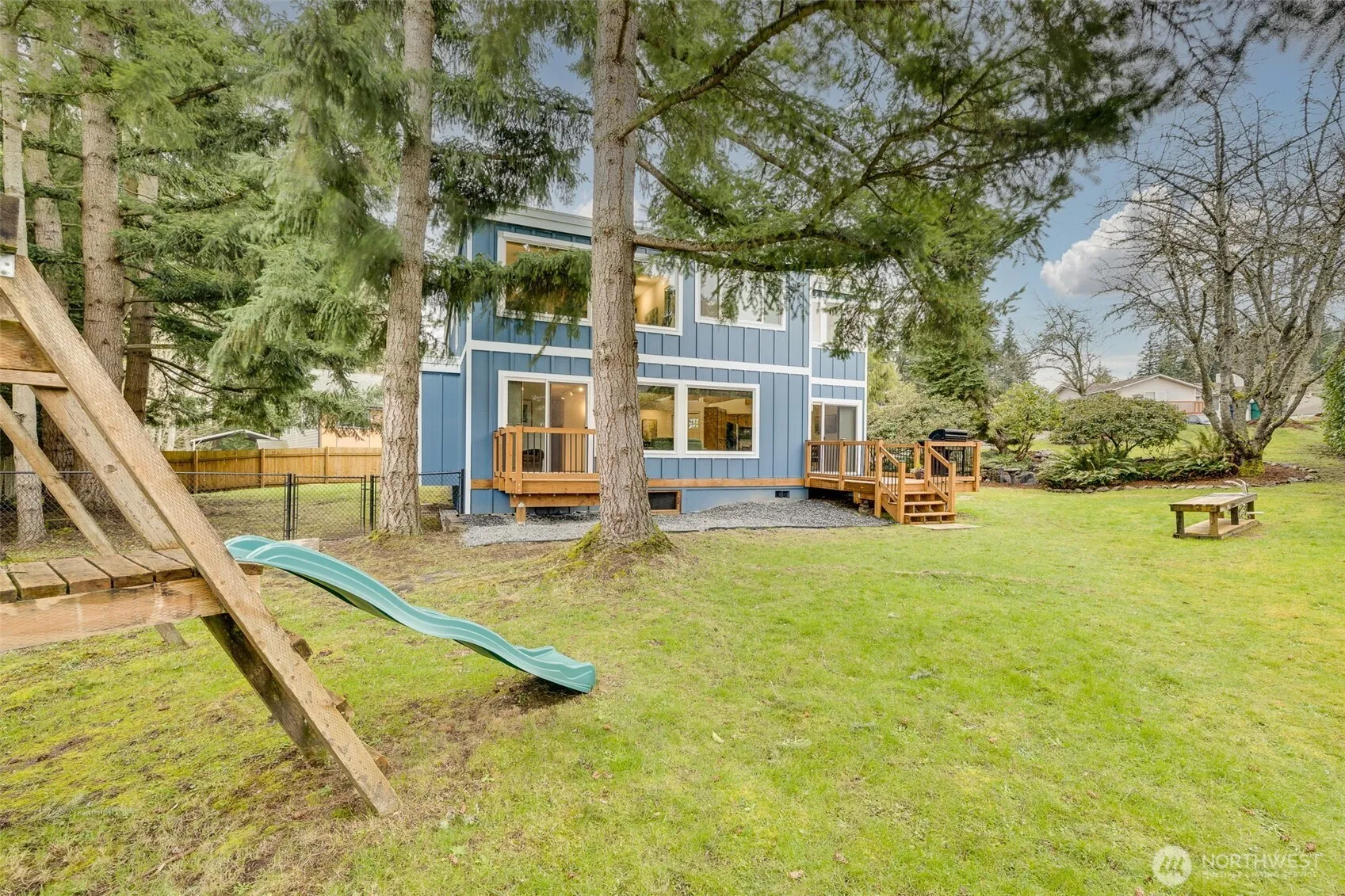 Tucked into a quiet cul-de-sac in the heart of Mukilteo, this home offers a rare blend of light, nature, and thoughtful design. Originally owned and designed by a NW architect to capture the changing angles of the sun throughout the seasons—casting beautiful geometric shadows that bring warmth and character to every space. Recently updated picture windows frame serene views of towering fir trees, creating a peaceful, almost treehouse-like setting you’ll love waking up to. The spacious layout features generously sized bedrooms, offering comfort and flexibility, while the large soaking tub provides the perfect place to unwind. Step outside to a large, open yard—your own Pacific Northwest canvas—ideal for entertaining, relaxing, or letting pets and young ones roam freely. Recent updates include new siding, decks, and fresh interior paint. Located within the highly sought-after Mukilteo School District, this property also offers the convenience of being pre-inspected and the freedom of no HOA. The lot and yard are full of mature landscaping, trees, and hedge for enhanced privacy. A short walk to the Japanese Gulch offers hiking, biking, community garden, and dog park. A unique opportunity to own a home where design, nature, and livability come together beautifully.
