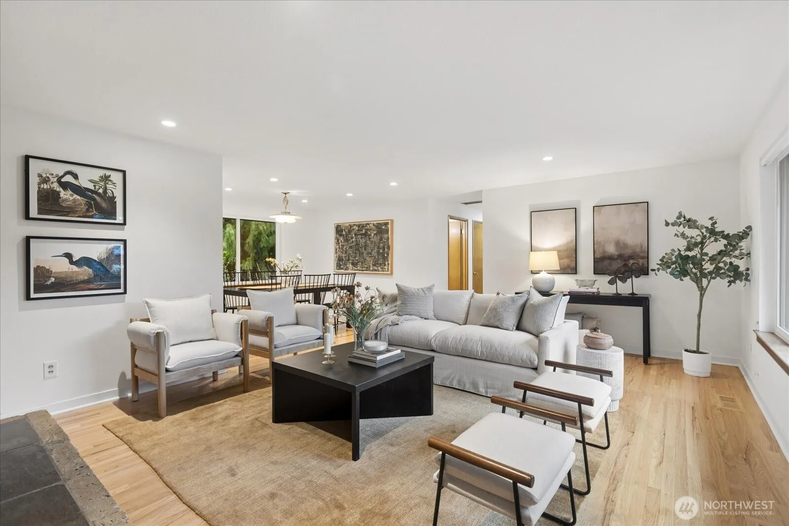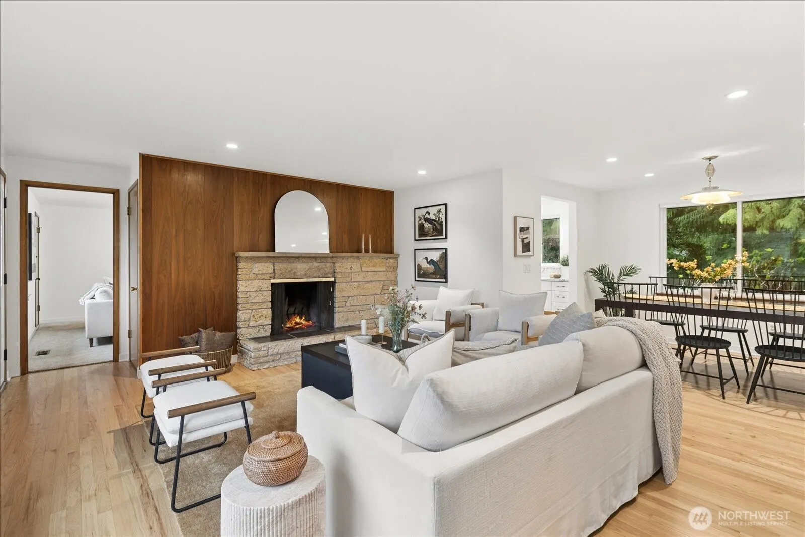Seaview rambler, beautifully updated and maintained on a secluded, peaceful lot. This home features original oak floors, large dining open to the formal living room with wood fireplace and sandstone hearth. Remodeled kitchen with custom cabinets and quartz counters/backsplash, including lots of storage and pull out cabinets. Cozy family room off kitchen has gas fireplace. Off the hall you will find 3 good sized bedrooms and remodeled 3/4 bath. 4th bedroom/office on opposite end of house, adjacent to another remodeled 3/4 bath and oversized laundry/storage room with outdoor access. Extensive and thoughtful landscaping/new hardscape to enjoy year round. Fully fenced backyard with gorgeous mature native evergreens and many varieties of Japanese Maples in both the front and backyards. Patio off kitchen to rest and relax in the serene yard space. 2 car attached garage, newer roof, new tankless hot water and heat pump/gas furnace. Seaview is a quiet neighborhood, minutes to many parks, downtown Edmonds and freeways! Move in ready rambler!