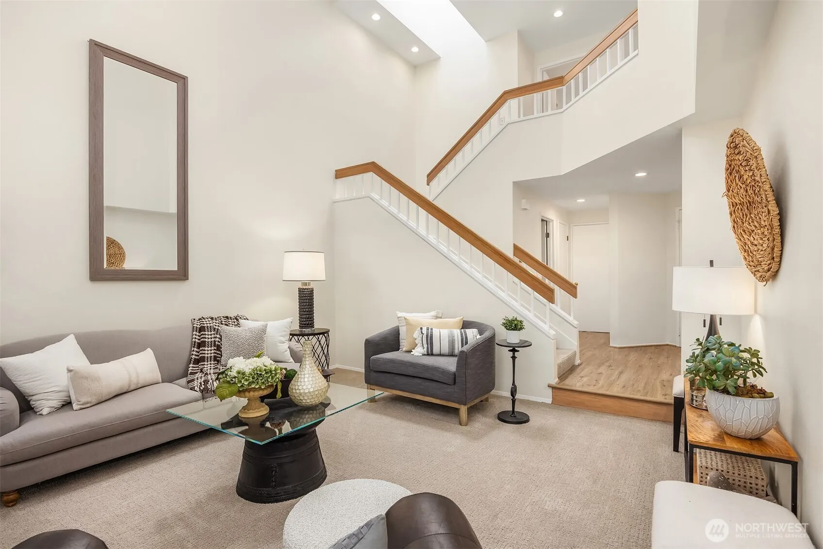 Location is everything, and this fabulous two-story townhome is ideally positioned for a commute-friendly lifestyle while still being just minutes from the beach, transit, Totem Lake Village, shopping, dining, parks, and trails. Beautifully maintained, the home offers an exceptional blend of comfort, style, and convenience. Soaring ceilings in the great room create a dramatic sense of space and light, while brand new carpet adds a fresh, polished feel throughout. Both spacious bedrooms feature attached bathrooms, walk-in closets with privacy and flexibility for everyday living or hosting guests. The attached two-car garage provides rare convenience, ample storage, and direct interior access. A convenient back patio is perfect for summer BBQs and easy outdoor entertaining. Thoughtfully cared for and designed for comfortable living, this home offers an outstanding opportunity to enjoy connected, accessible living in one of Kirkland’s most desirable locations.