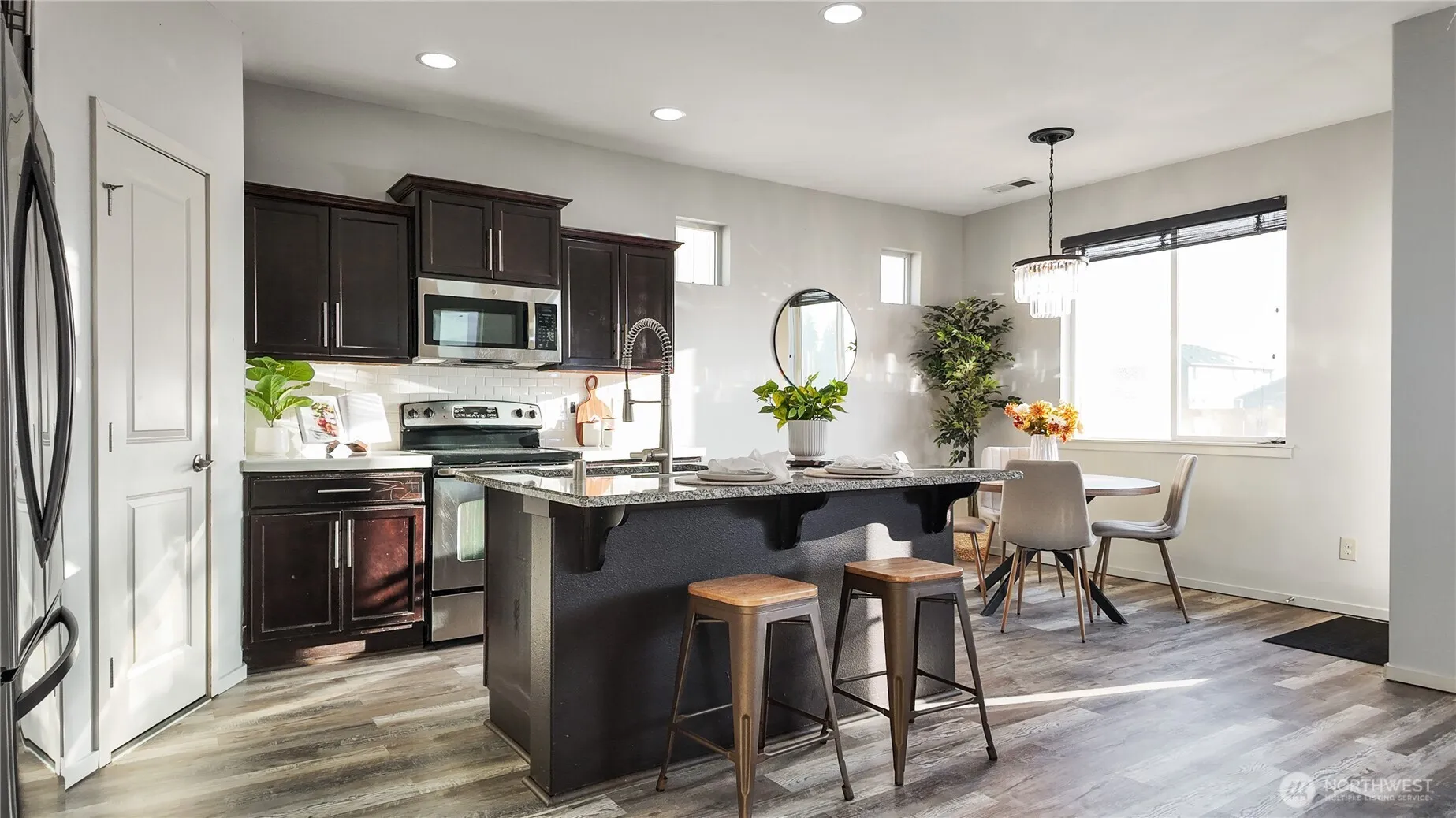 Welcome home to space, comfort, and peace of mind at 20523 5th Ave Ct E in Spanaway. This home has already been pre-inspected and features low-maintenance updates, so you can move in feeling confident from day one.Walk in from the front door or garage and you’ll immediately notice the widened hallways and tall ceilings that make the entry feel open and welcoming. The main floor is set up for everyday living, with a convenient half bath, a cozy living room with a fireplace, and a kitchen and dining area that flow together nicely.Right off the entry, there’s a flexible bonus room that can easily be a 5th bedroom, home office, or workout space—whatever fits your lifestyle best.As you move toward the back of the home, the open-concept living area really comes together. The kitchen is a great place to spend time, with quartz countertops, plenty of prep space, and a walk-in pantry that keeps everything within reach. It’s a layout that just makes sense whether you’re hosting friends or having a quiet night in.Upstairs, things feel just as inviting. The primary bedroom is tucked behind French doors, giving it a little extra sense of privacy. The bathroom is thoughtfully laid out with a separate toilet area, and the walk-in closet gives you all the storage you need. You’ll also find the laundry room right at the top of the stairs—super convenient—and a hallway that feels open in. This home is conveniently located and minutes from shopping, dining and ,JBLM