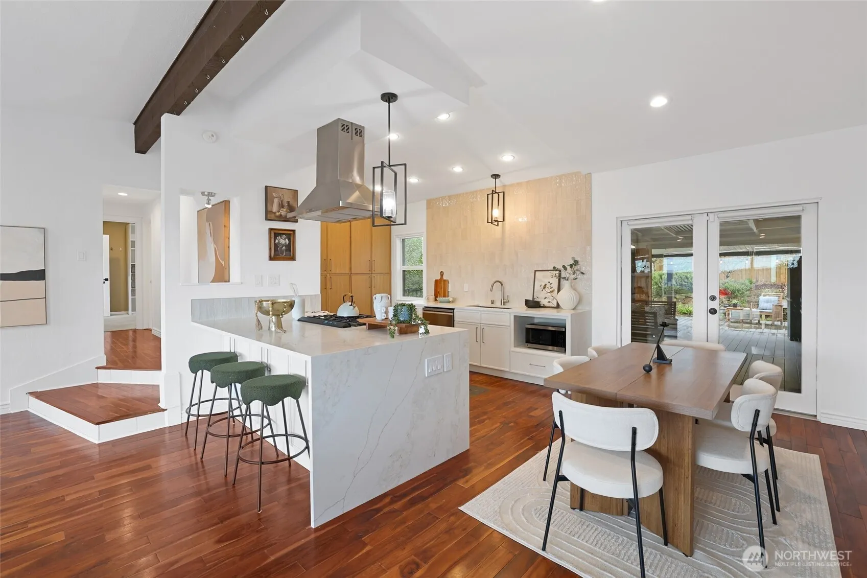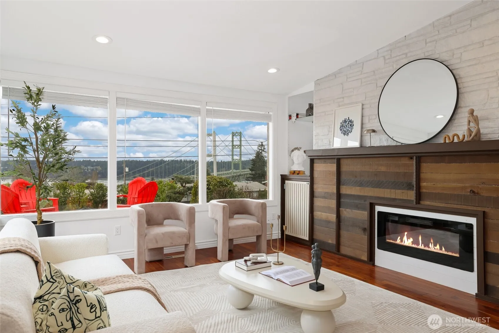 Perched in a highly sought-after North Tacoma location, this 4-bedroom, 2-bathroom masterpiece showcases breathtaking, stunning views of the Puget Sound, the Narrows Bridge, and the Olympic Mountains. The entire interior has been freshly updated with new designer paint, creating a bright and airy atmosphere that complements the beautiful teakwood floors flowing throughout the main level. The expansive living room features massive windows with custom blinds that perfectly frame the stunning Northwest scenery. The heart of the home is the stunning, newly updated kitchen. This modern culinary space boasts brand-new shaker cabinets, elegant quartz countertops, and a massive pantry cabinet wall with gorgeous finishes. High-end stainless steel appliances complete this chef’s dream. Retreat to the main-floor primary suite, which includes a huge walk-in closet and a fully updated bath featuring the same high-end quartz and cabinetry finishes found in the kitchen. The lower level offers incredible versatility with three additional bedrooms, a spacious family room, a dedicated gym area, and a sleek 3/4 bath. Outdoor living is unmatched here: two front decks provide the ultimate vantage point for iconic sunsets, while a huge covered back patio opens to a private, fully fenced backyard oasis. Equipped with solar panels and a brand-new HVAC system for peak energy efficiency, this remarkable home is a rare opportunity to enjoy luxury finishes and world-class views every single day.