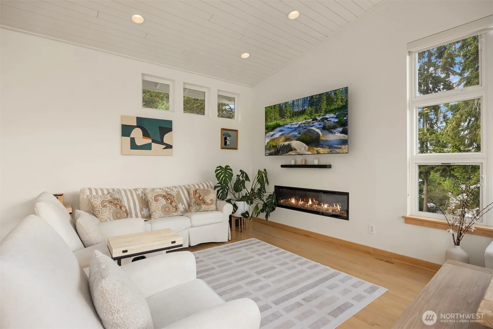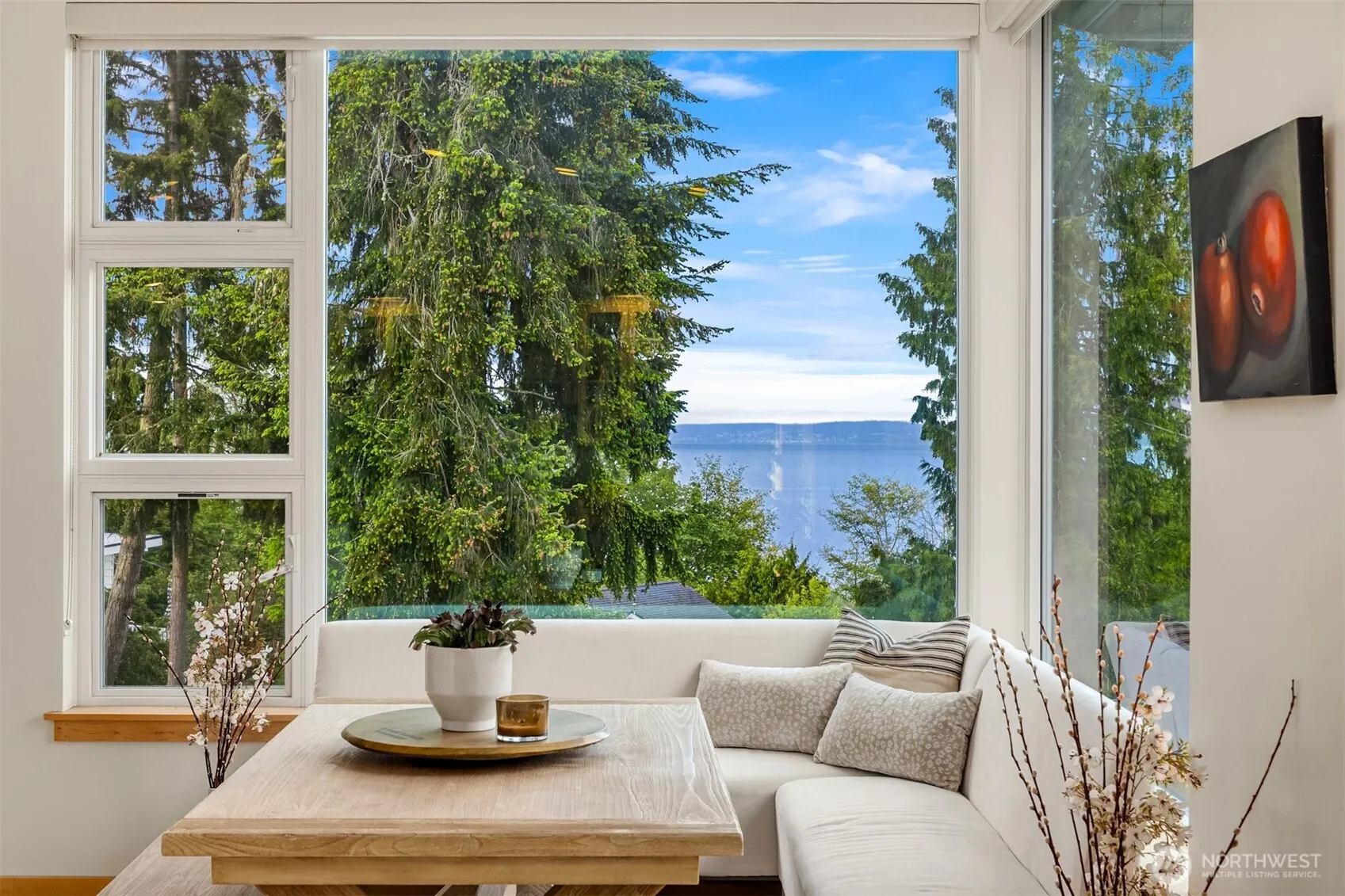 Enjoy modern coastal living with sweeping views of Puget Sound and the evening parade of ship lights from this thoughtfully updated beach house. The heart of the home is a redesigned kitchen with a generous working island—perfect for enthusiastic cooks and social gatherings—flowing into bright, open living spaces that highlight the maritime vista. The main living area features wood covered vaulted ceilings and easy access to the large deck. A perfect spot for an evening cocktail or BBQ with friends Three bedrooms each feature private ensuite baths for comfort and convenience, and a large main floor bedroom offers easy single level living. Outdoor enthusiasts will appreciate the well maintained trail that leads directly to a spectacular beach ideal for launching a kayak or stand up paddleboard. The backyard is partially fenced for privacy and pets, anchored by a spacious patio and tranquil water feature. An inside/outside gas fireplace extends your entertaining season and creates a cozy focal point for evening gatherings. With quality finishes, thoughtful layout, and immediate beach access, this home blends low maintenance luxury with the relaxed rhythm of waterfront life.