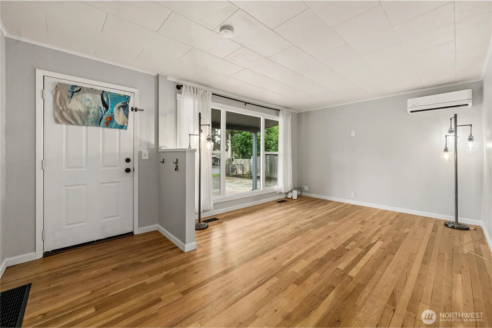 Welcome home to this charming mid-century rambler offering easy one-level living and thoughtful updates throughout. This 3-bedroom home features beautifully restored original hardwood floors and fresh interior paint, blending classic character with a clean, move-in-ready feel. The spacious kitchen flows easily into the living areas, creating a comfortable layout for everyday living and entertaining. The primary bedroom includes French doors and a ceiling fan for added charm and comfort. Stay comfortable year-round with forced air heat and efficient ductless mini split A/C. Step outside to a fully fenced front and backyard with a large covered patio and fire pit—perfect for year-round gatherings. A covered front porch adds to the home’s welcoming curb appeal, while the gated driveway provides privacy and security. The detached extended garage offers great shop space, plus additional outbuildings for storage or a garden shed. RV parking adds extra convenience, and the location offers easy access for commuting to nearby amenities, highways, and JBLM.