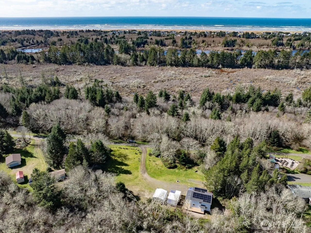 Escape to your own private coastal retreat! Situated on 10 acres of peaceful privacy between the Pacific Ocean and Willapa Bay, this charming 2-bedroom, 1.5-bath home offers the perfect blend of comfort, character, and natural beauty. Thoughtfully remodeled in 2021, the home features a chef’s kitchen and vaulted, beamed ceilings that create a warm and inviting atmosphere in the living and dining areas. Stay cozy on cloudy coastal days beside the wood-burning stove, while a new solar panel system helps keep monthly utility costs exceptionally low. With its own septic system, individual well, and solar power, this home offers efficiency, independence, and sustainability. Enjoy year-round light in the enclosed sun-room with desirable southern exposure, or relax on the expansive 600 sq ft enclosed deck with barn-door access—perfect for entertaining or unwinding while surrounded by nature. The property also includes a 400 sq ft carport and a 175 sq ft hobby shed with a covered porch, offering space for projects, storage, or creative pursuits. With loads of charm and room to roam, this peaceful coastal haven offers privacy, tranquility, and easy access to both the ocean and Willapa Bay—ideal as a full-time residence, vacation home, or weekend getaway. This is a must see in person property.