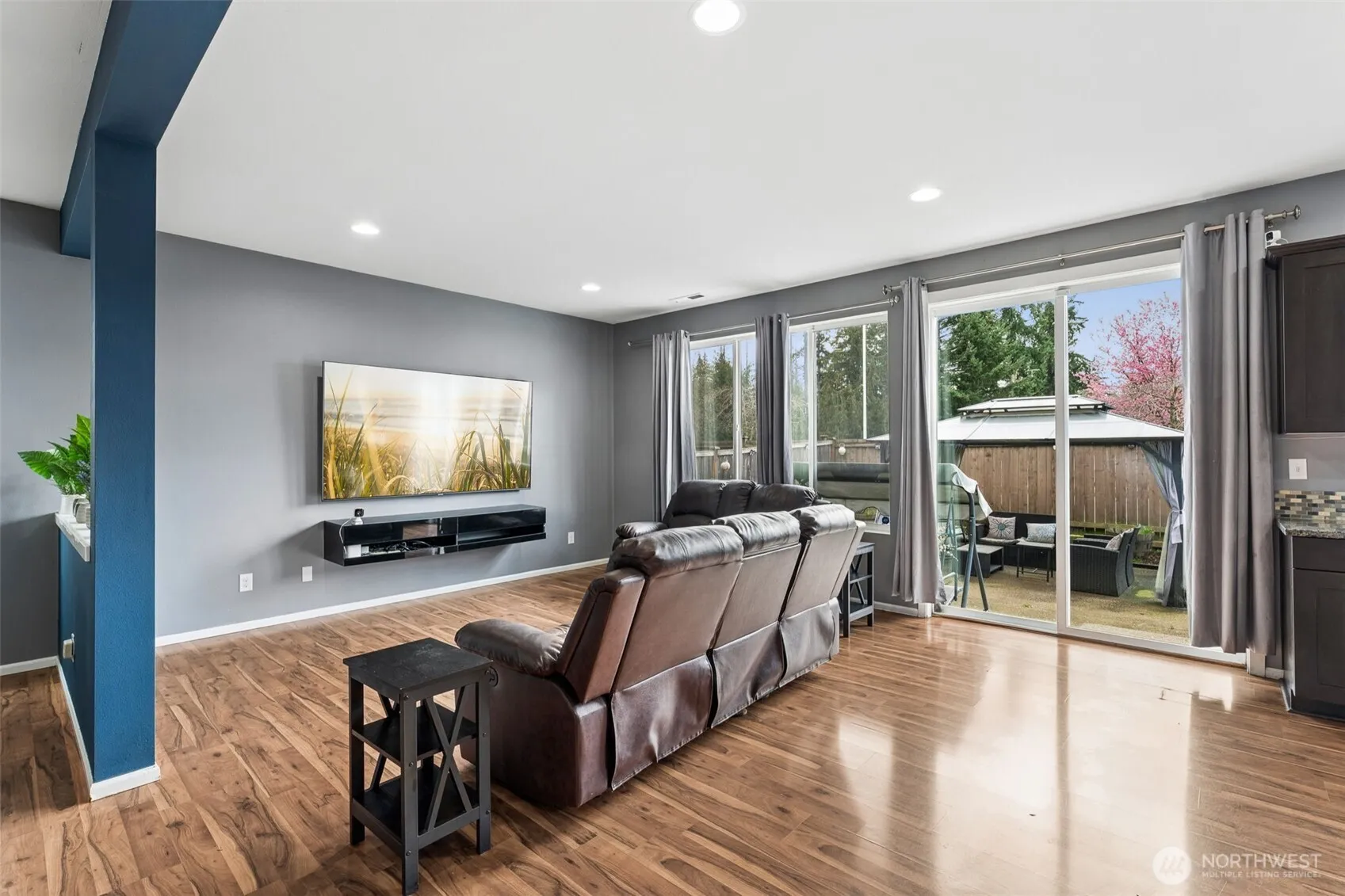 This stunning 3-story home in the desirable Terra Woods community of Puyallup offers the perfect blend of space, comfort, and style! The main level welcomes you with a formal dining area that seamlessly connects to a warm and inviting family room—ideal for both everyday living and entertaining. The chef’s kitchen is a true standout, featuring granite countertops, a stylish tile backsplash, stainless steel appliances, and ample space for cooking and gathering. A convenient powder bath completes the main floor. Upstairs, you’ll find three generously sized guest bedrooms, a full bath, and a serene primary suite complete with a luxurious 5-piece ensuite bath and walk-in closet + an additional loft space—perfect for a home office, reading nook, or flex area. The third floor offers an expansive bonus/rec room with vaulted ceilings and a closet, providing endless possibilities for a media room, playroom, or guest retreat. Step outside to your private backyard, fully fenced and thoughtfully designed with an extended patio, charming gazebo, and relaxing jacuzzi tub—perfect for year-round enjoyment and entertaining.