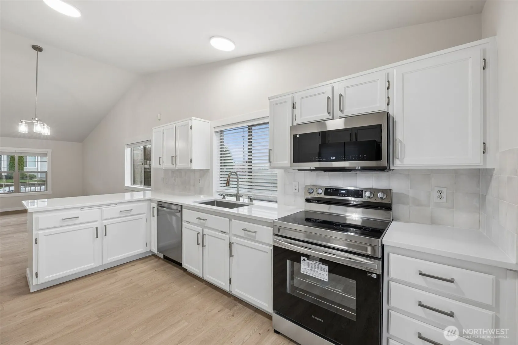 Beautifully updated for a sleek, fresh look. Great room concept to meet your needs, open to New Kitchen, quarts counters, tile backsplash, new appliances and lots of cabinets. Primary Bedroom with private bath and walk in closet . 2 additional Bedrooms with main bath. Patio off of Kitchen, fenced yard. 2 car garage.