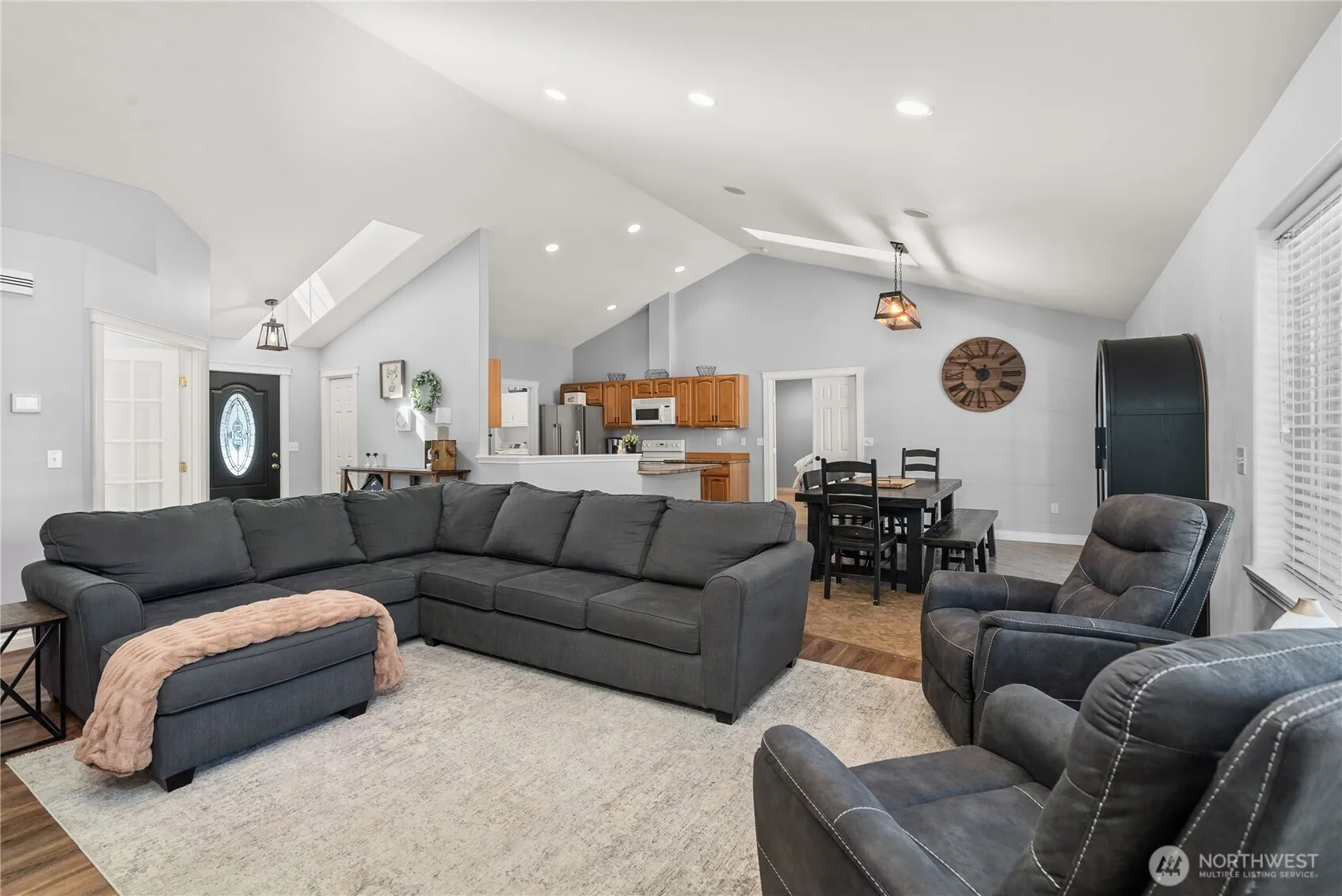 Welcome to your private Elma oasis! Situated on 5.4 flat, cleared acres, this beautifully maintained rambler offers the perfect balance of peaceful country living and modern comfort. The spacious interior showcases a blend of tile, laminate, and carpet flooring, and a thoughtfully designed kitchen and living area that flows seamlessly for everyday living and entertaining. A newer heat pump provides efficient year-round comfort. Step outside and enjoy the incredible outdoor living spaces, including a covered deck and large custom patio with firepit, perfect for gatherings or relaxing while taking in the peaceful rural setting. The property also features a massive 60×36 fully finished shop with a theater room loft/potential ADU space, 12-ft doors, a half bath, and lean-to storage, making it a dream setup for hobbies, equipment, RV storage (with hook ups), or a home business. With RV parking, garden space, pasture potential, and plenty of room for toys or animals, this property offers exceptional versatility while still being just minutes from town. Rarely does a property with this level of privacy, acreage, and shop space come available—don’t miss your chance to own this remarkable Elma retreat.