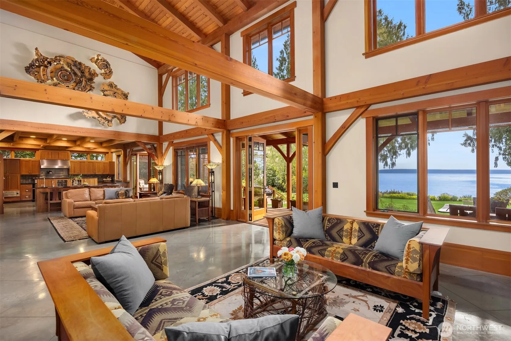 Settle into the sweeping views of the Puget Sound & Cascade Mtns in the timeless craftsmanship of this Green & Green Design home, built by Hive Construction. Privately sited on 2.5 park-like acres, at 8,184 sq ft, this 5 br timber-frame estate features unparalleled quality and craftsmanship throughout w/custom millwork, soaring beamed ceilings, and elegant architectural detail to be enjoyed for generations. An Entertainers dream w/walk-in pantry & full scullery. Sprawling main floor primary w/2 walk in closets & prvt view deck. Ride the four-person funicular or stroll down your private path to 114± ft of bulkheaded waterfront and beach house w/heated floors & fire pit. Separate carriage house w/2car garage provides ideal guest space.