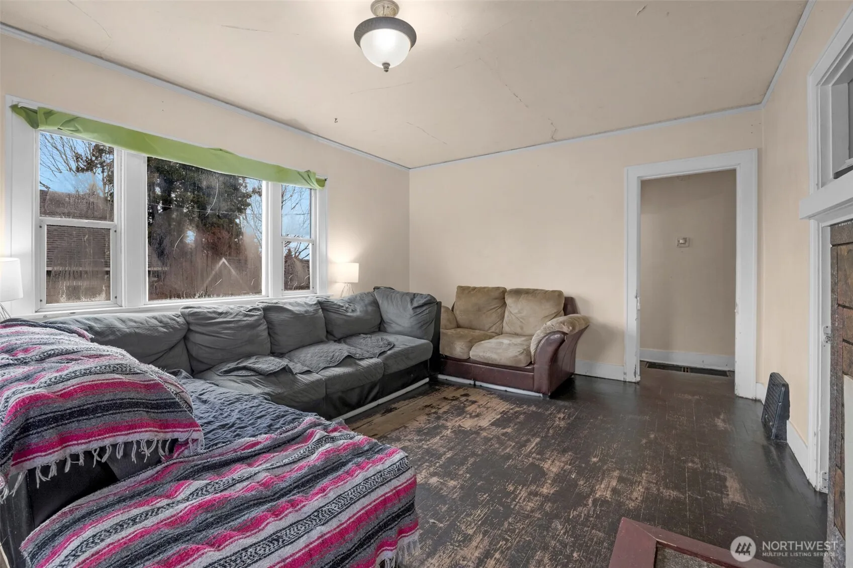 Classic 1½-story Craftsman in North Everett filled with timeless character and opportunity. This charming home features several original touches including hardwood floors in the living room, hallway, and main-floor bedroom, along with classic glass doorknobs and original wall sconces that add to its vintage appeal. The inviting living room centers around a cozy fireplace, creating a warm gathering space, while the light-filled eating nook off the kitchen brings in great natural light and adds charm to the kitchen area. The upper level offers a second bedroom and additional flexible space. Downstairs, the partially finished basement provides endless possibilities—finish it for additional living space, keep it as generous storage, or create the perfect workshop or hobby area. Located just minutes from the Everett Transit Center, shopping, and entertainment at Angel of the Winds Arena, with easy access to I-5 for commuters. A wonderful opportunity to own a classic Everett home with character, convenience, and room to grow. Also, new sewer was permitted, installed, approved in November 2021.