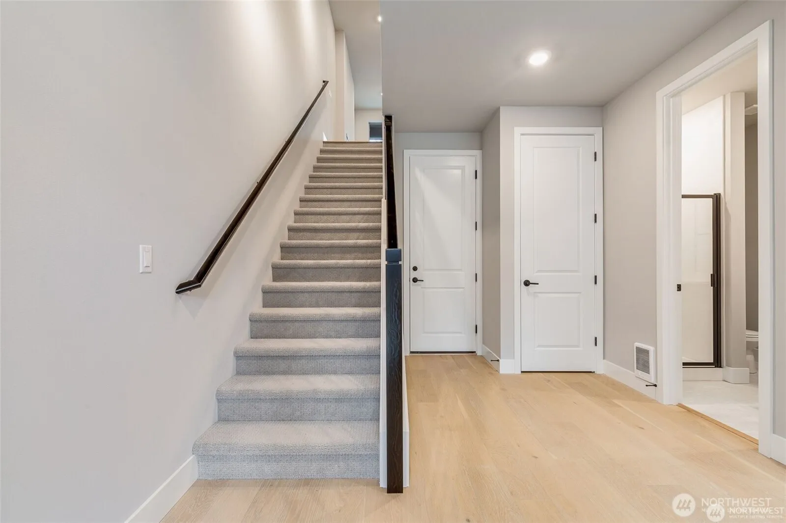 Downtown Winslow Condo is NW Modern meets luxury design in this Dec 2023 built 3-story unit. Home features high ceilings & many upgrades including Mini-Splits AC, 1st flr 4th bdrm/office with 3/4 hall bath, 2 car garage. Main floor is large open concept including living room with glass fireplace, deck, dining area, gourmet kitchen with stainless appliances & quartz counters, large island with breakfast bar, walkin pantry, half bath, & storage closet. Top floor has 2 bdrms with full size hall bath, laundry room, elegant primary suite including separate soaking tub & walk-in shower. Common recreation area, BBQ area, bocce court, pergola. Blocks to ferry, shops, theater, library, community pool & Bainbridge HighSchool. All this could be yours!