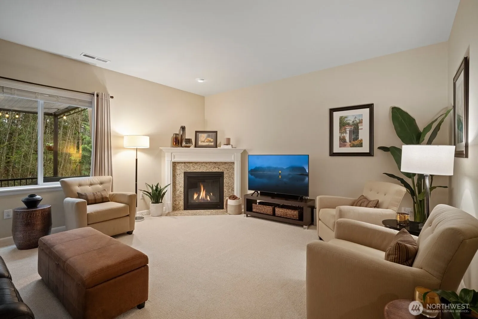 Better Than New in Tuscany Hills! Beautifully upgraded north facing 5 bedroom + bonus room home backing to a peaceful greenbelt. This spacious & thoughtfully designed home features a main-floor bedroom & ¾ bath, ideal for guests or multi-generational living. All new flooring with French Oak luxury wide-plank & new high-end carpet. The chef’s kitchen offers slab granite counters, espresso-stained cabinetry, stainless GE appliances, gas range, new dishwasher, & walk-in pantry. Open to the inviting great room with a granite gas fireplace & wired for surround sound with in-ceiling rear speakers, while large windows showcase the tranquil wooded views that provide natural privacy year round. Upstairs includes 4 bedrooms plus a dedicated media/bonus room wired for surround sound with rear in-ceiling speakers. The generous primary suite features a soaking tub, tiled shower, dual 36-inch vanity, & two walk-in closets. Enjoy the sunny southwest-facing backyard with a premium Transcend Trex deck & covered pergola overlooking the greenbelt. The fully fenced yard includes Dream Turf artificial lawn, spacious side yards & low-voltage landscape lighting. Smart & efficient features include CAT6 Gb Ethernet wiring, Ziply Fiber internet, central A/C, air purification scrubber & hardwired security system. Conveniently located near parks, shopping & DT Redmond, with easy access to Woodinville wine country Microsoft & the Microsoft Connector service. Move-in ready!