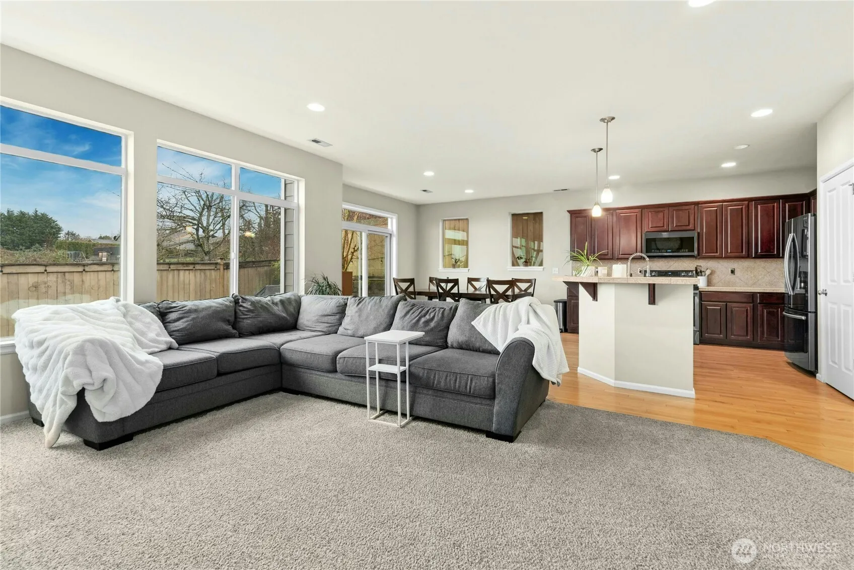 Beautifully maintained 3-bedroom, 2.5-bath home in desirable Lake Stevens offering 2,138 sq ft of comfortable living space. Built in 2007, this home features a bright open-concept layout with large windows that fill the home with natural light. The spacious kitchen includes a center island, pantry and premium stainless steel appliances installed in 2022, and opens seamlessly to the family room with a cozy gas fireplace—perfect for everyday living and entertaining. An elegant open-railing staircase adds architectural charm, while fresh newly painted trim give the home a clean, updated feel. Outside, enjoy a fully fenced backyard ideal for relaxation, pets, or gatherings. Convenient gas connection available for a gas range. Primary suite includes a 5pc bath with oversized walk in closet. This superbly maintained home is move-in ready and offers comfort, style, and functionality in a great location in the sought after Lake Stevens school district. Premium MainVue New construction behind.
