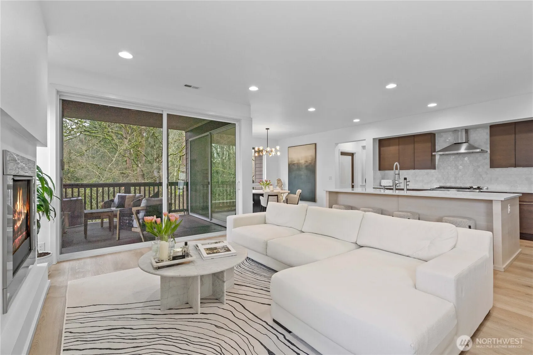 Updated and with an enviable greenbelt position in Kendall Ridge, this spacious home offers flexible living and peaceful forested privacy. The light-filled main level centers around a stunning designer kitchen featuring quartz countertops, stainless steel appliances, updated cabinetry, new flooring, and an oversized island perfect for gathering and entertaining. From your living room, step outside to a covered deck with a cozy gas fireplace overlooking the fully fenced backyard and serene greenbelt backdrop—an ideal space to relax or host year-round. With 4 bedrooms, 3 baths, and a generous bonus room, the layout offers excellent flexibility for today’s varying lifestyles. Two suite-style bedroom options—including a private lower-level suite with its own downstairs access—create ideal space for guests, multigenerational living, or extended stays. The main floor primary retreat features a spa-inspired 5-piece bath with jetted tub, walk-in shower, and oversized walk-in closet with built-in vanity. Additional home highlights include multiple gas fireplaces, custom blinds, California closet systems, and thoughtful updates throughout. Conveniently located near parks, shopping, dining, and commuter routes to Hwy 18, 167, and I-5. Comfort, versatility, and peaceful Northwest surroundings come together in this exceptional Kendall Ridge home.
