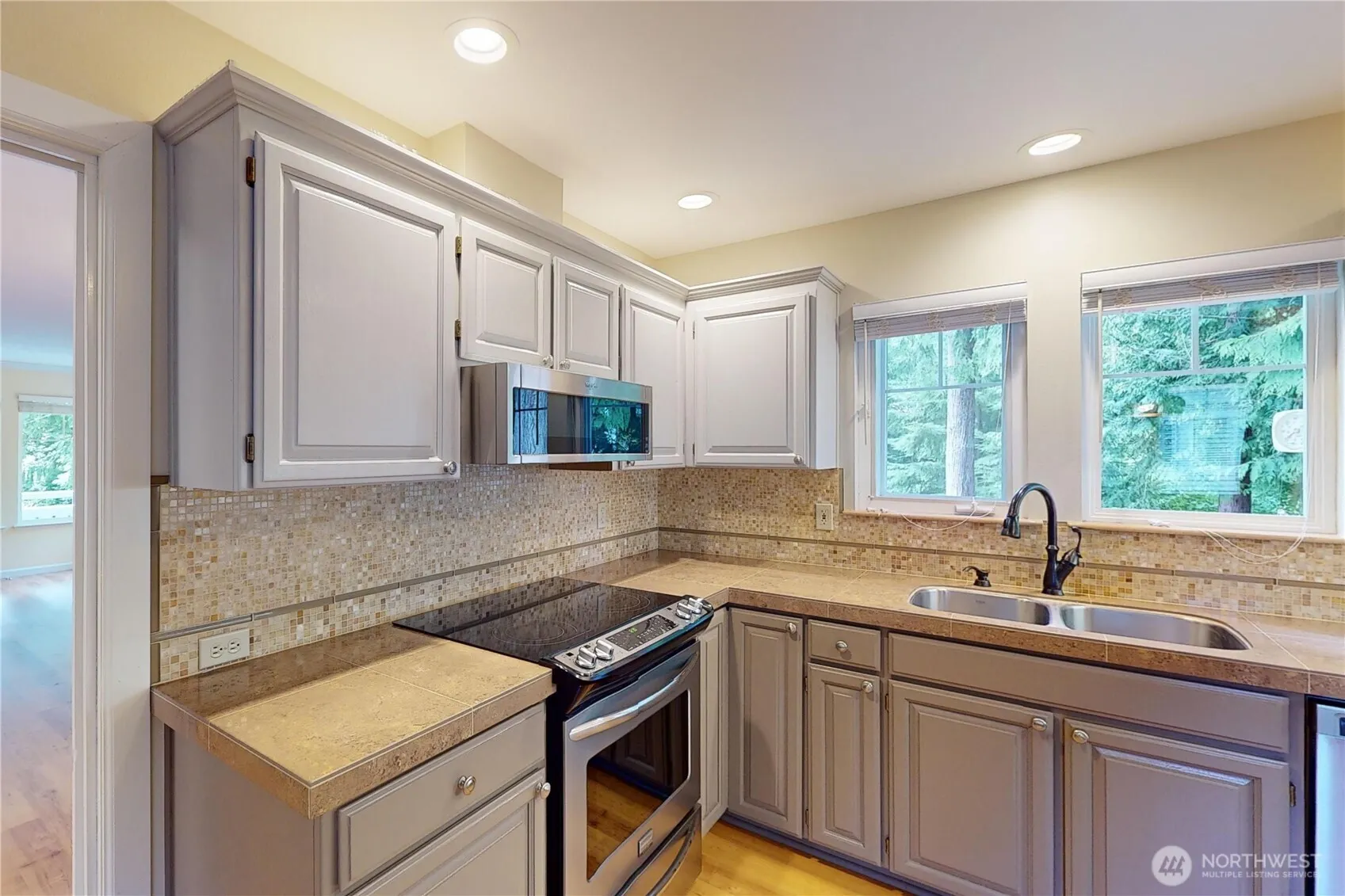 Top-floor living in the heart of Port Ludlow offers light-filled comfort surrounded by evergreens with close proximity to the marina, golf course, and Bay Club. Located in Inner Harbor Village, this one-level, 2 bedroom, 2 bath condominium offers 1,257 square feet designed for everyday ease. Large windows create a bright, in-the-trees feel, while the private balcony is perfectly sized for morning coffee and quiet reflection. A propane fireplace and generous windows anchor the spacious great room designed to include your dining table, and the spacious kitchen provides generous cabinetry, room to cook comfortably, and dinette space.The primary suite features heated tile flooring in the bath, a comfort also found in the second bathroom. A second bedroom with a built-in Murphy bed allows flexible use for guests, den or workspace. The dedicated laundry room connects the kitchen to the attached garage, adding convenience to daily living.Behind the condo, you’ll enjoy privacy, trees, and wildlife. Perfect for full-time living or an easy lock and go retreat. Enjoy access to Bay Club amenities including an indoor pool, fitness center, wood shop, plus social and cultural events. A central jumping off point for excursions to Port Townsend, Marrowstone Island, Seattle, and onward to the world.Experience Inner Harbor Village living and see how seamlessly this home fits the lifestyle you deserve.