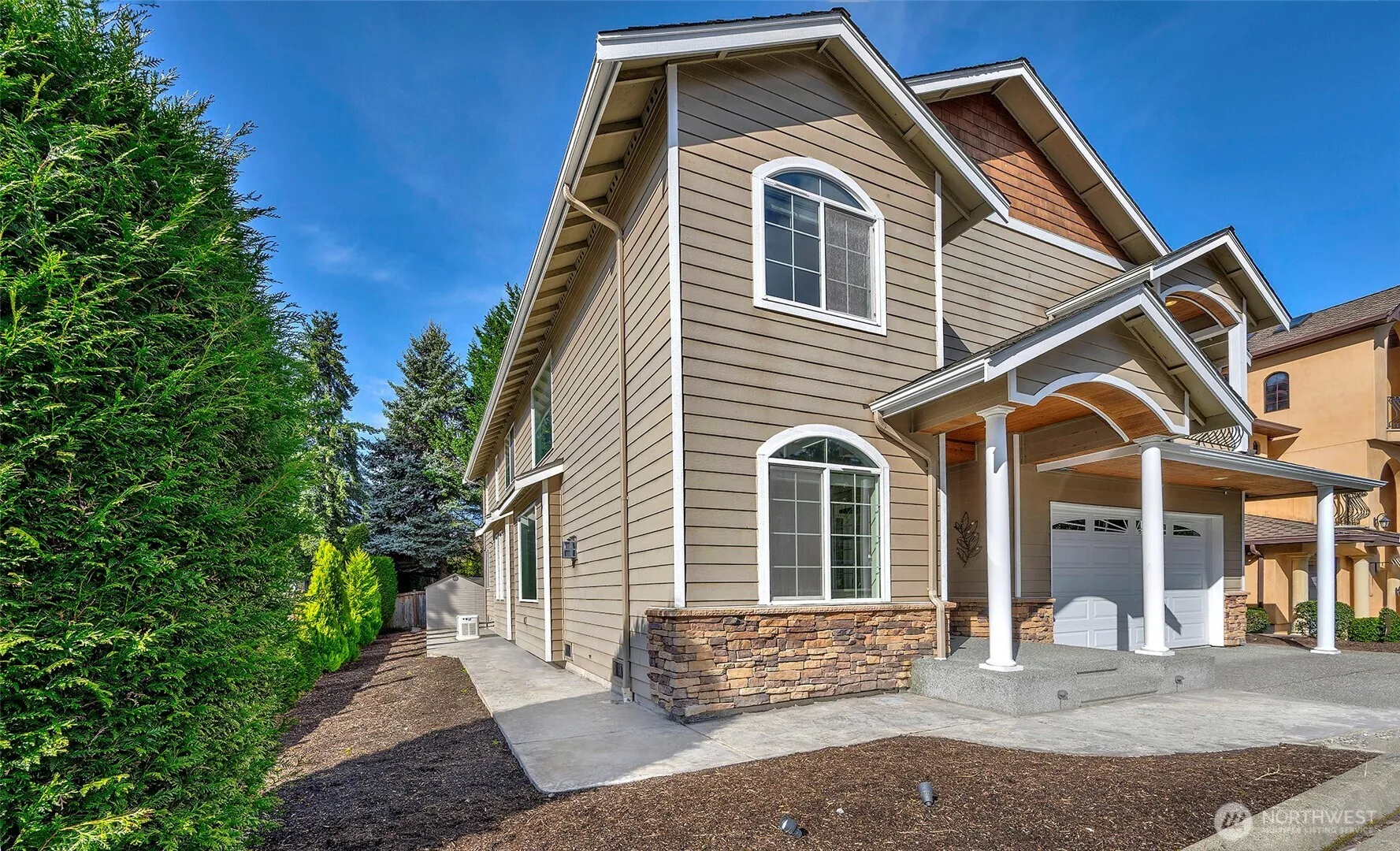 $200,000 price reduction! Meticulously maintained custom home in the highly sought-after Microsoft / Grass Lawn neighborhood near Bridle Crest Trail. This exceptional residence offers 5 spacious bedrooms, each with its own attached bath & large closet, including a convenient main-level bedroom with en-suite bath. The primary suite features a luxurious retreat w/ large walk-in closet/dressing room, covered balcony, Jacuzzi soaking tub, makeup vanity, towel warmer, & a stunning three-sided fireplace. The main floor includes a private office/den w/ a two-sided fireplace, formal living & dining rooms, & a beautifully designed kitchen featuring Canyon Creek & European Beech cabinetry, high-end appliances, large granite island & counters, corner bar, command center desk, two instant hot water dispensers, & drinking water filtration. Travertine flooring & granite surfaces add elegance throughout. Enjoy a spacious great room, open loft, high ceilings, & four fireplaces. Comfort is ensured with a 7-zone energy-efficient in-floor hydronic radiant heating system, Air conditioning w/backup heating, & a hot water circulation pump for instant hot water. Additional features include a built-in vacuum system, EV charger-ready 2-car garage, & low-maintenance landscaping. Outdoor living includes a patio w/ fire pit & fireplace. A 22KW whole-house generator ensures reliable backup power. Conveniently located near Microsoft, Google, Pro Club, Gras Lawn, & DT Redmond, Kirkland, & Bellevue.