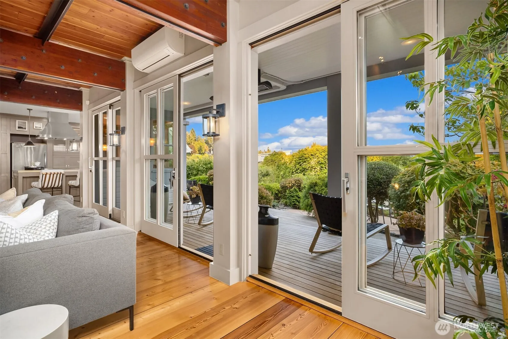 Exceptional Bernie Baker-designed home on one of Bainbridge’s most beloved in-town streets, just 3 blocks from DT Winslow & ferries. Featured in Sunset & Coastal Living magazines, the home is both a work of art & invitation to live well. Impeccable craftsmanship, wide plank fir floors, river rock fireplace & stunning Josephine Rice floral mural. Sleek kitchen w/ farm sink & gas range. Great room opens to private Ipe deck & sunlit patio. Main floor primary for one-level living + show-stopping upper primary w/ Puget Sound & Mt. Rainier views, fantastic walk-in-closet & nearby bath. Gardener’s paradise w/ full-day sun & room to grow, gather, or simply relax. Trails to beaches just outside your door. A celebrated design in a storybook setting.