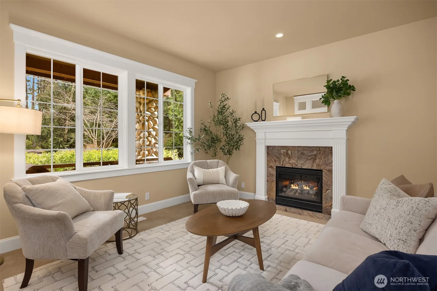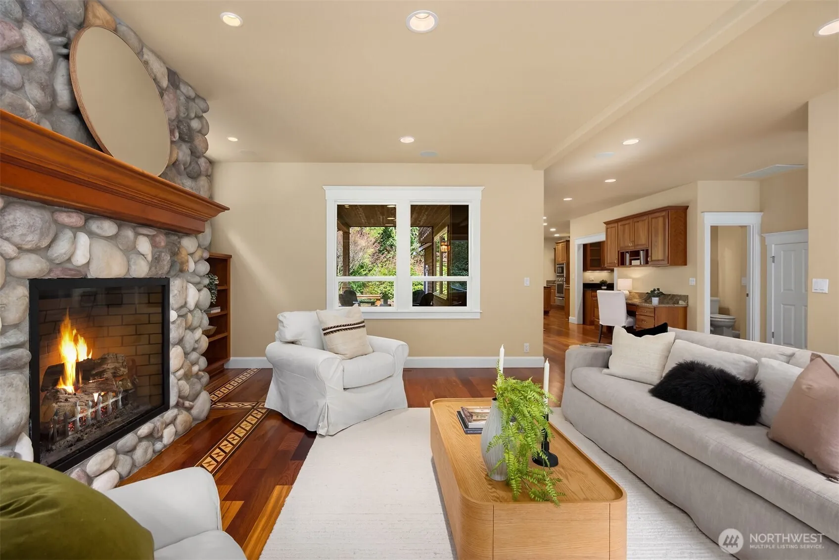 This property has it all! Enter via a long private driveway to discover this elegant, spacious home. The classic look of natural shingles and a wide covered front porch welcome you. A fantastic floor plan features a balance of open concept design and cozier spaces, constituting a perfect blend for modern living. Enjoy everyday living and entertaining with the generous cook’s kitchen featuring high-end appliances, large island with prep sink and walk-in pantry. Find custom built-in shelving and a speaker system throughout the home, as well as high ceilings on both floors. Oversized windows and French doors to an extensive back deck, provide exceptional indoor-outdoor connectivity. Four sizeable bedrooms include a primary suite with fireplace, dual walk-in closets and spa-like bathroom. With a 3-car attached garage plus a detached garage/shop, there is room for everything including hobby space! Located in the coveted Rolling Bay neighborhood and sited on 2.3 private, landscaped acres, the property feels like an oasis. With something in bloom year-round, enjoy ornamentals, herbs, fruit trees and a berry patch. Take in the grounds and wildlife that the property attracts from the nearly 1000 square foot rear deck. Nearby amenities include Bay Hay & Feed (nursery, clothing, groceries and more), Rolling Bay Café, Via Rosa 11 Italian restaurant, and Ted Olson Nature Preserve.