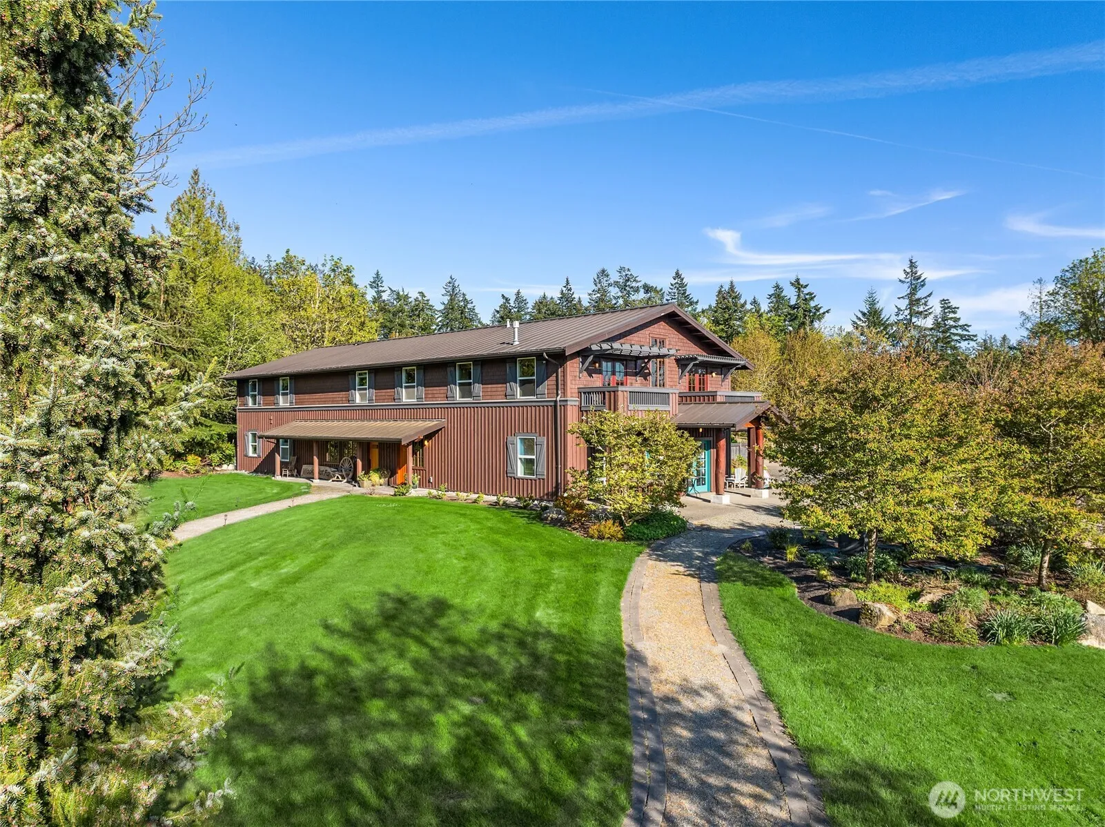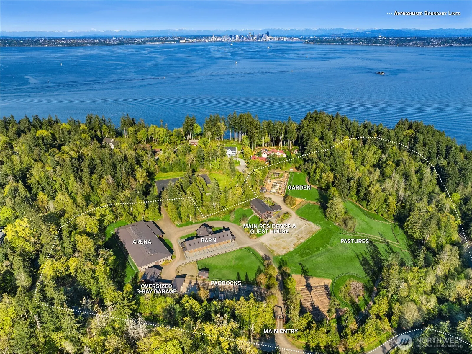 Exquisitely crafted equestrian estate on 19+ acres with a 2,709 SqFt 3-bed/2.5-bath main residence & a 1,740 SqFt 3-bed/2.75-bath guest house. The facilities offer everything needed for a premier equine program; a regulation dressage-sized indoor arena w/ specialized footing & a heated viewing area, a 15-stall barn featuring sand turnouts & auto water system for each stall, heated indoor/outdoor grooming stalls, heated grain room, hay loft, a finished studio space; plus a large heated area w/ an office, tack room w/ indoor lockers, washer/dryer & full sink, & 1/2 bath. The property also includes 4 paddocks w/ sheds, pastures, a 1,375 SqFt heated studio/shop space, 3-bay oversized garage & 7 bays of covered parking for trailers & equipment.