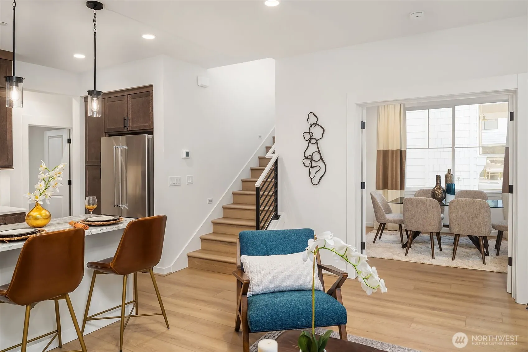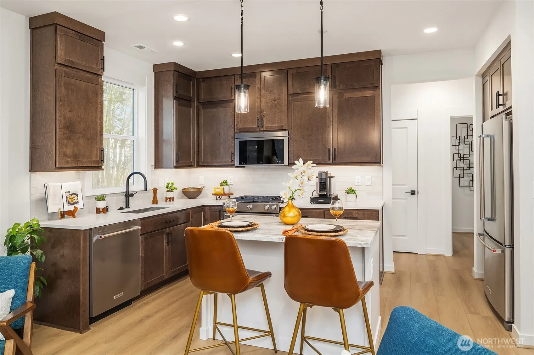 Canopy Cottages by Toll Brothers is nestled in a serene, forested setting just minutes from downtown Kirkland. Enjoy green space views from the front and peaceful forest views behind this charming yet modern cottage. A spacious front porch invites you to relax and take in the tranquil surroundings. Inside, the open-concept kitchen flows seamlessly into the cozy living room and an adjacent flex room with French doors—ideal as a 3rd bedroom, office, or dining room. A full appliance package is included. The impressive primary bedroom retreat features vaulted ceilings and a well-appointed bath with separate vanities. A beautiful clubhouse completes this unique community. Enjoy a convenient lock-and-leave lifestyle close to all major centers.
