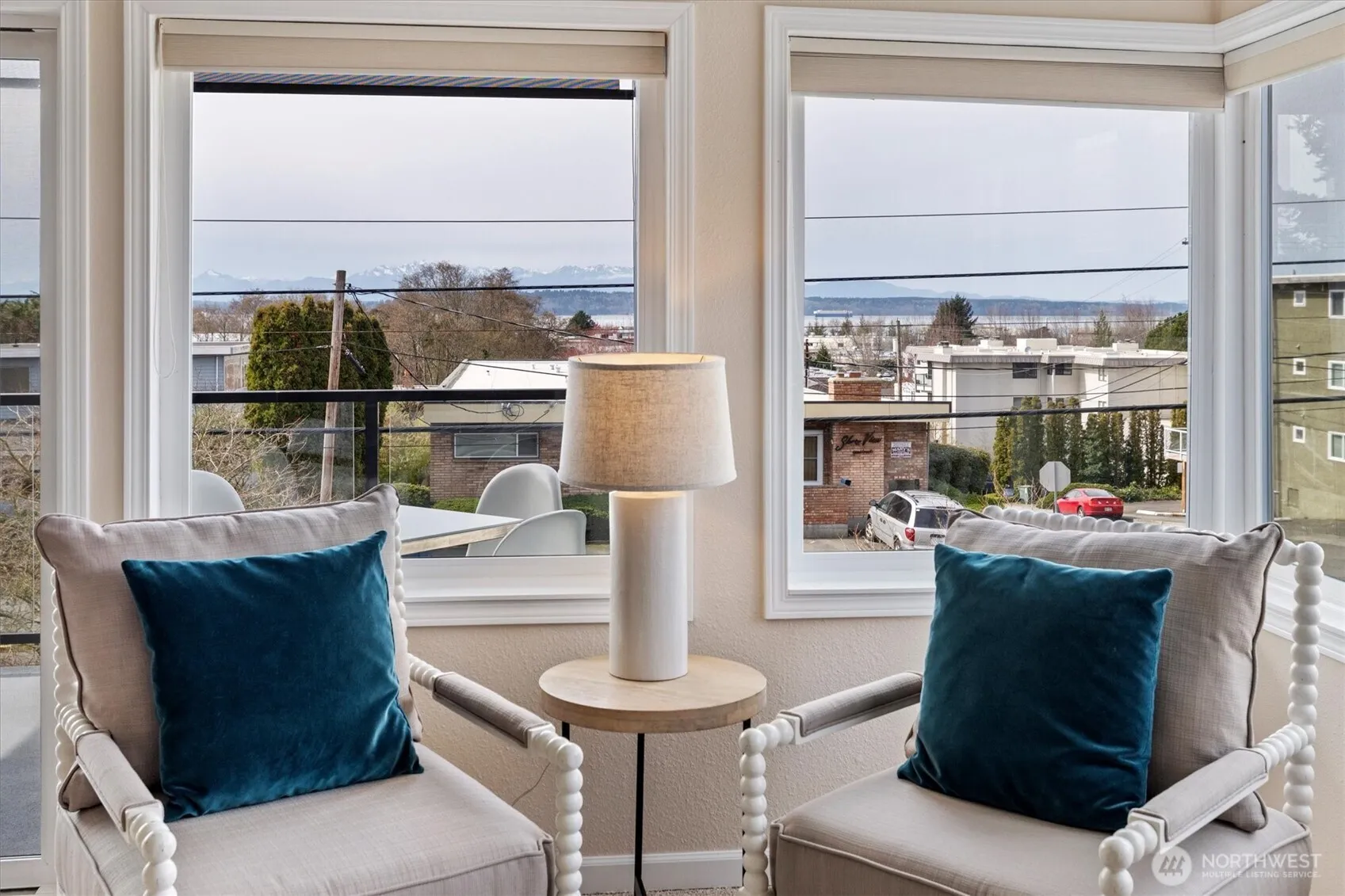 Experience the ultimate lifestyle in the heart of the Edmonds Bowl. This expansive, 1,500+ square foot corner unit offers stunning views of the Puget Sound, the Cascades, and flickering ferry lights. Large updated, open gourmet kitchen featuring new quartz countertops, a subway tile backsplash, and stainless steel appliances. This kitchen was built for cooking and entertaining. The primary suite serves as a private retreat with a remodeled bath and walk in closet, while the detached third bedroom – with its own entrance and 3/4 bath – offers endless flexibility as a guest suite, quiet home office, artist’s studio or anything you want it to be! Light and open – a very cheerful home! New paint and carpet. Step through sliding doors to your own private entertainment deck, or stroll just blocs to the Edmond’s bowls best cafes and shops. Secure garage, elevator access, zero stairs, newer siding and windows, pet friendly and a rock solid HOA