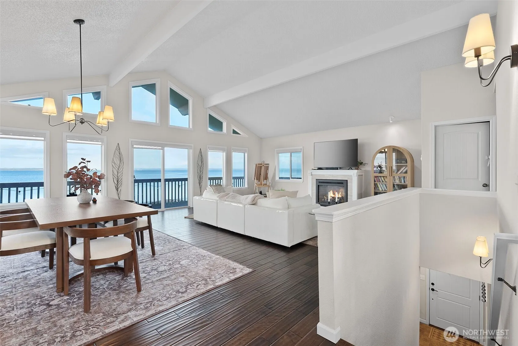 Experience elevated coastal living with sweeping North Bay views, radiant sunrises, and on clear days, a stunning glimpse of Mount Rainier. Positioned on a rare double parcel, this property offers exceptional space, privacy, and future potential—an increasingly rare find in Ocean Shores. Designed for seamless indoor-outdoor living, enjoy a wraparound porch, expansive patio, fire pit, and private trail leading directly to the bay. Inside, soaring vaulted ceilings and expansive windows fill the home with natural light while framing the surrounding views. A gas fireplace anchors the main living space, creating a warm yet refined atmosphere. Thoughtfully designed with a spacious pantry, walk-in closets, and flexible utility space, this home blends comfort, function, and elevated coastal living in one remarkable setting.