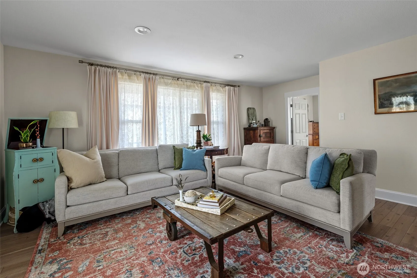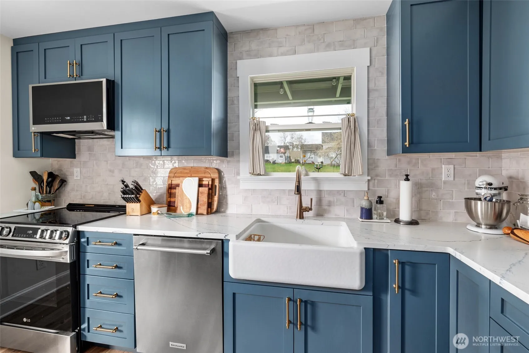 Exceptional in-town Coupeville Modern Farmhouse with partial water views! Newly renovated and move-in ready, this rare 4-bedroom home features an upscale kitchen, beautifully updated bathrooms, new hardwood flooring, and curated finishes throughout. Thoughtfully designed with an inviting layout, abundant natural light, and a main-level primary suite, this home seamlessly blends classic character with modern upgrades. Built for efficiency and longevity, upgrades include a metal roof with solar panels, ductless mini-splits, vinyl windows, and a solid poured concrete foundation. Enjoy the iconic wrap-around porch, fully fenced yard, updated landscaping, new driveway, and raised garden beds—perfect for outdoor living. Unbeatable location just blocks from downtown Coupeville favorites, including Front Street Grill, Oystercatcher, Goldie’s, Toby’s, local coffee shops, farmers markets, and year-round festivals that make this place truly special. This home offers an unmatched lifestyle in one of Whidbey Island’s most sought-after locations!