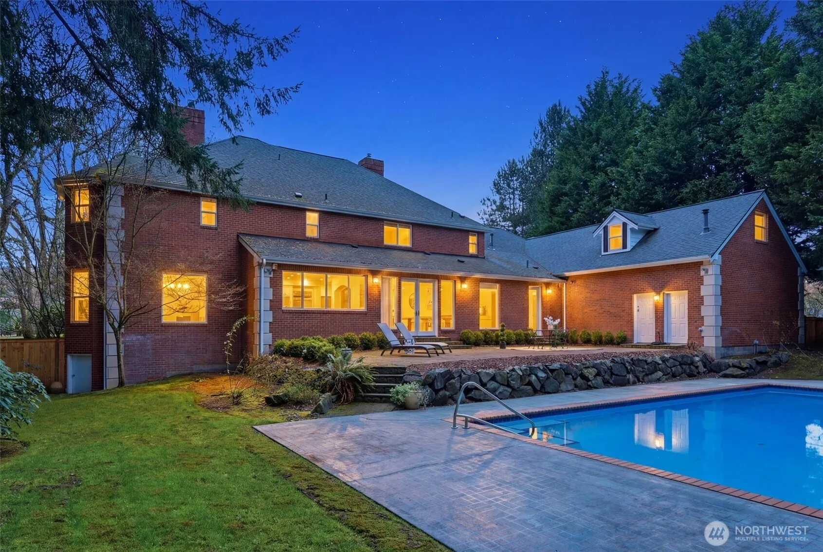 Ready to own your legacy property inside the gates of Augusta? This stately brick colonial home offers an extraordinary blend of timeless elegance, privacy, and refined living in the heart of UP. Sun filled living spaces are both grand and cozy. The chef’s kitchen features quartz countertops, modern appliances, and timeless finishes. The large primary suite is luxurious and includes a 5 piece bath, fireplace, and walk in closet. Upstairs also features three more generous bedrooms, Jack and Jill bath, and a bonus space that provides many entertainment options. Outdoors, a private backyard sanctuary awaits. Mature landscaping surrounds a sparkling pool and tranquil entertaining areas creating an ideal setting for summer evenings and memorable gatherings. For collectors, the exceptional seven-car garage offers space and convenience for your vehicles and toys. Located near the US Open fairways of Chambers Bay, scenic waterfront trails, conveniences of University Place, and across the street from Charles Wright Academy.