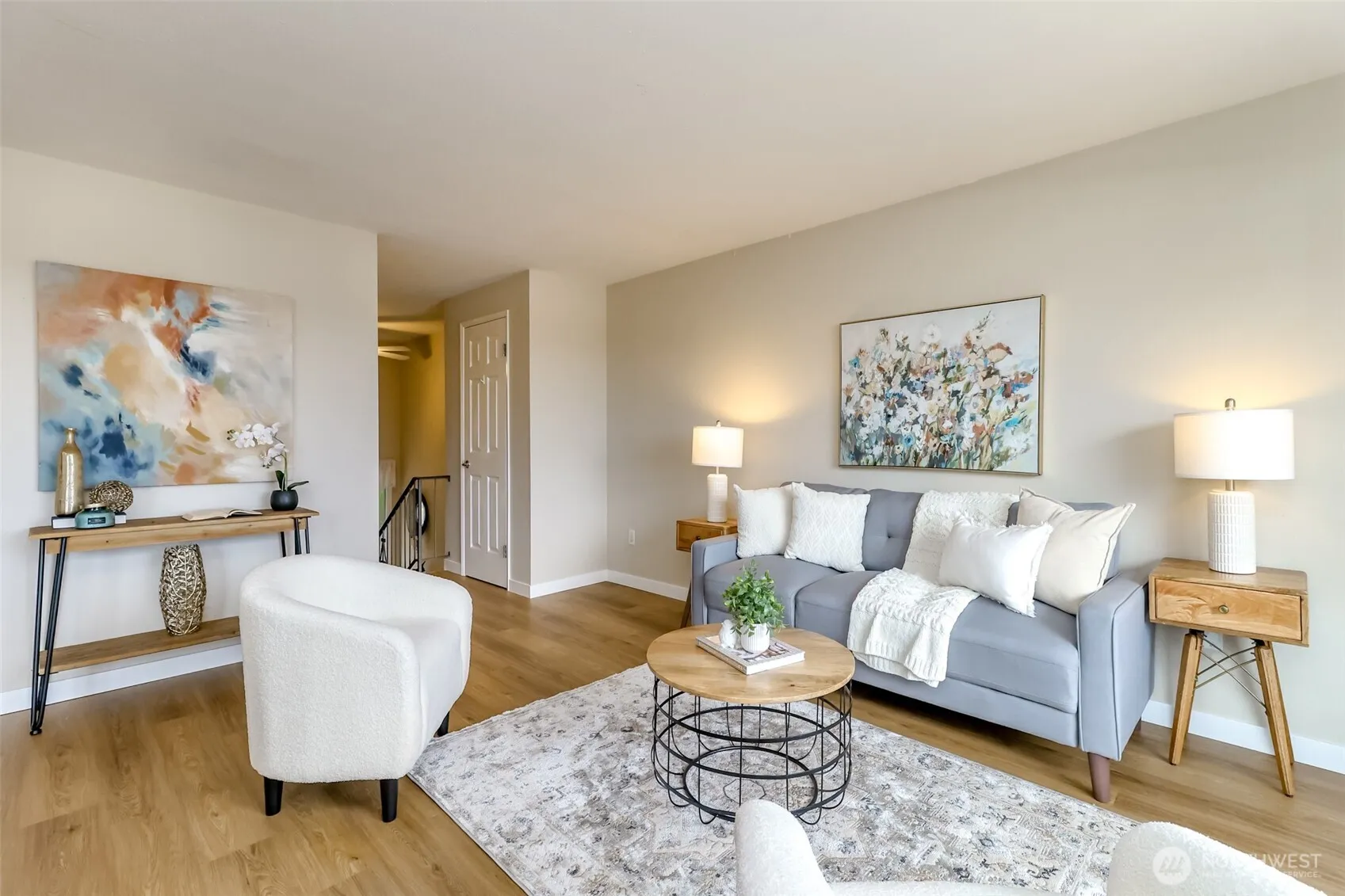 Welcome to this refreshed and move in ready condo offering comfort, convenience, great summer community pool and fast access to Hwy 512 and Hwy 167. This 1356 sq. ft. home features thoughtful updates throughout including new hardwood laminate flooring, fresh interior paint, updated counter tops, new bathroom vanities and updated kitchen lighting giving this home a clean and modern feel. The kitchen features stainless steel kitchen appliances and flows easily into the living space making everyday living and entertaining simple.Both bathrooms have been updated with new flooring and and vanities. The utility is oversized and offers additional storage space for extra organization. Enjoy outdoor living with a full length deck, plus lower level patio access directly to the community pool, perfect for relaxing on warm days. This updated condo combines generous sq. footage, modern finishes and desirable amenities.