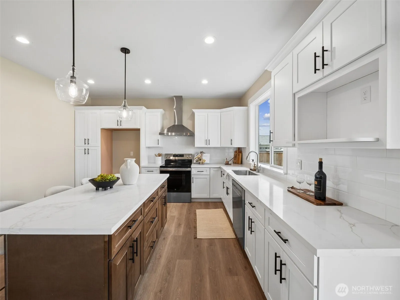 Stunning new construction with NO HOA. This beautifully designed home features custom painted millwork throughout, durable LVT flooring, and efficient mini-splits with A/C. The spacious kitchen showcases quartz countertops, a classic subway tile backsplash, and a dining area with direct access to the back patio—perfect for indoor/outdoor living. The large living room offers a cozy electric fireplace. French doors to “Flex” room (dining room/den/office/media room) and a convenient ¾ bath is also located on the main level. Upstairs, you’ll find four generously sized bedrooms, including a spacious primary suite featuring a 5-piece bath and a massive walk-in closet. The additional bedrooms are larger than most in comparable floor plans, offering plenty of space for everyone. Enjoy a 2-car garage with an automatic opener, plus convenient RV/boat parking for all your extra vehicles and toys. The fully fenced backyard features a covered patio and beautiful landscaping. Located in the charming city of Buckley, just minutes from local shops, restaurants, schools, and public transit.