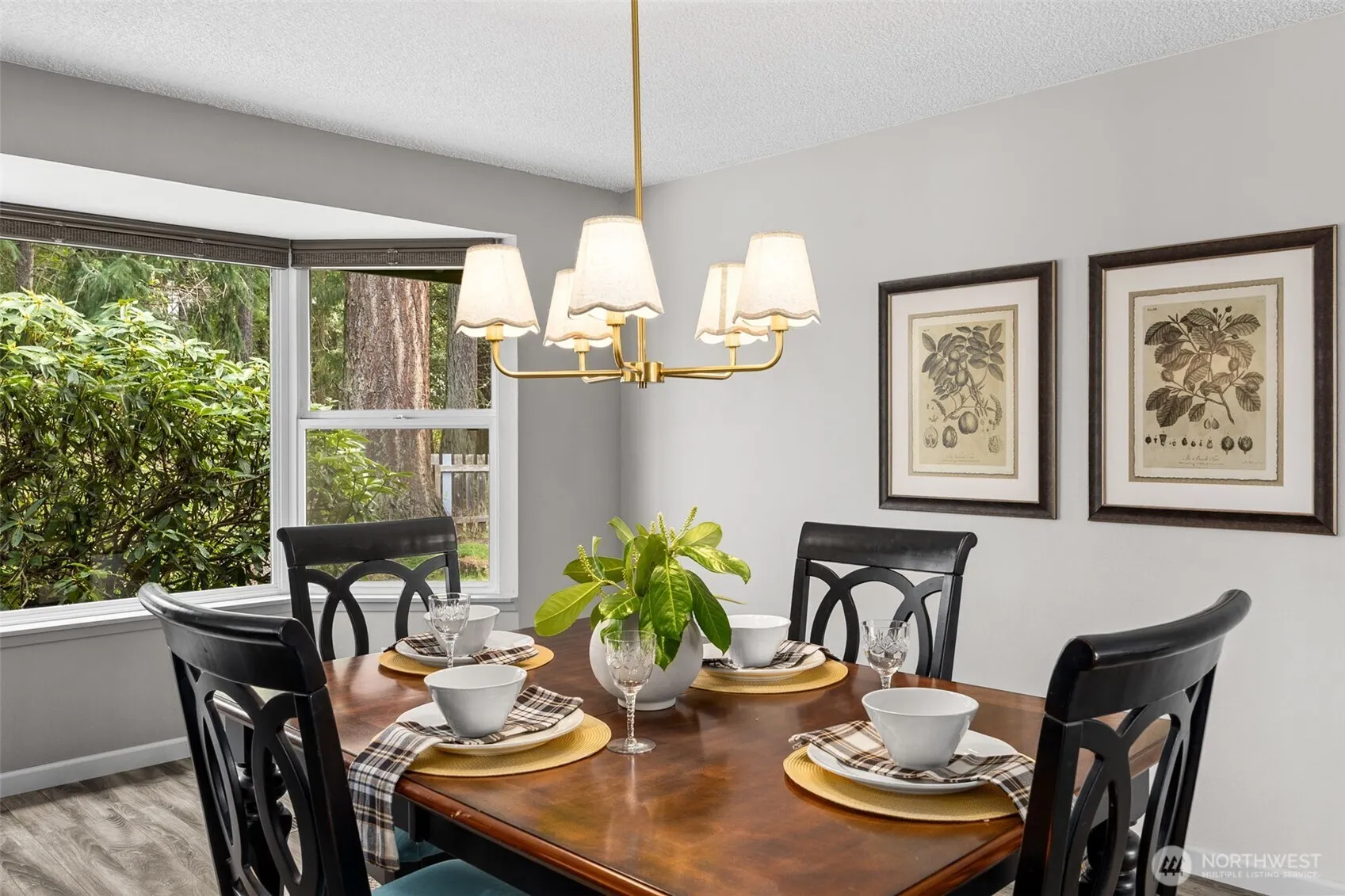 Fully fenced backyard • Covered deck • Community pool & pond. Spacious 3-bedroom, 2.25-bath, 2,127 sq ft single-story home in the desirable Woodlake Community, located in the highly regarded University Place School District. Open-concept layout with ample natural light, freshly painted interior, formal dining, large family room with wet bar, and wood & gas fireplaces. Kitchen features new countertops, painted cabinets, subway-tile backsplash, gas range, and all appliances stay, plus built-in workspace off kitchen. Primary suite with en-suite bath and walk-in closet. Exterior includes cedar siding, vinyl windows, sliding doors to covered deck, fully fenced backyard, updated shed with windows, raised garden beds, sprinkler system front and back, and backs to green space. Systems include routinely maintained heat pump with A/C, newer water heater (2 yrs), and exterior paint ~5 yrs old. Large garage with ample storage. Community amenities include swimming pool, cabana, and walking trails. Located ~1.0 mi to Chambers Bay Golf Course, 0.8 mi to Chambers Creek Regional Park, 1.2 mi to Safeway, and 1.3 mi to Starbucks.