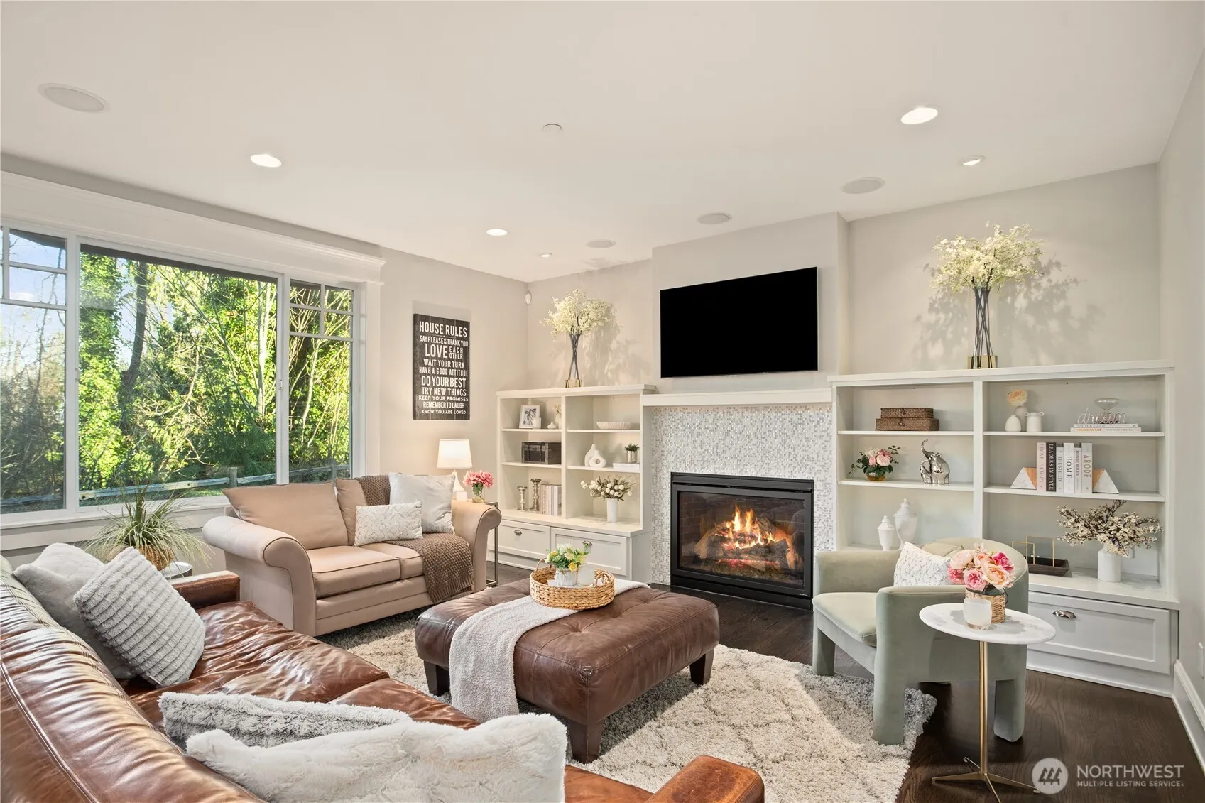 Tucked away in complete privacy, this custom-built retreat offers a peaceful, secluded setting surrounded by natural beauty. At the heart of the home is the chef’s kitchen, showcasing quartz countertops and top-of-the-line stainless steel appliances, including a Sub-Zero fridge and a professional-grade Wolf range with 6 burners, double griddle, and dual ovens. A convenient pot filler and massive center island complete the space, creating the perfect spot for gathering and entertaining. The open living spaces create an effortless flow for everyday living and hosting. Step outside to your private backyard oasis and enjoy PNW summers around the built-in gas fire pit. The spacious primary suite offers a true retreat, complete with a large walk-in closet and a spa-inspired 5-piece ensuite bath featuring a jetted soaking tub. Every bathroom is elevated with under-cabinet lighting for a clean, modern touch. Additional standout features include a massive private gym, a dedicated movie theater, and a versatile laundry room that doubles as a craft or hobby space. Thoughtfully designed for both comfort and functionality, the home features real hardwood flooring and is filled with abundant natural light throughout. This custom craftsman-style home offers an incredible PNW living experience.