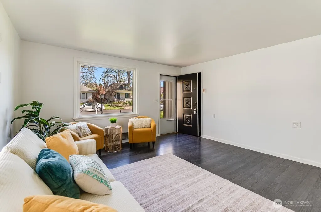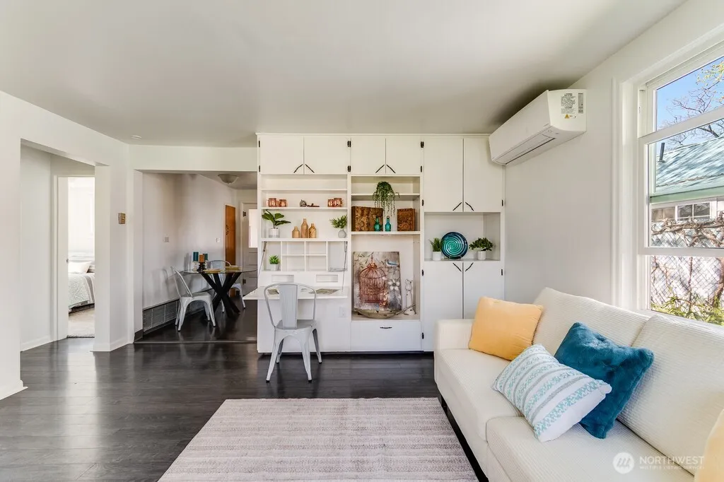 Charming cottage with fresh paint and new plush flooring in the two bedrooms. The home’s layout provides a smartly designed entertaining space with built-in shelves and desk, along with convenient access to the kitchen and dinette area. You’ll appreciate all the storage and counter space for the chef of the house, and two windows provide peaceful views of the private, partially fenced yards. The bathroom has been remodeled and offers a large shower, new vanity and washer/dryer, which are included. Off the kitchen is a fully enclosed back porch and bonus storage space. The 14X13 covered patio gives a private space to relax and enjoy BBQ’s in the shade while the 12X18 detached garage offers storage or parking. Make an appointment to see this sweet home before it’s gone!