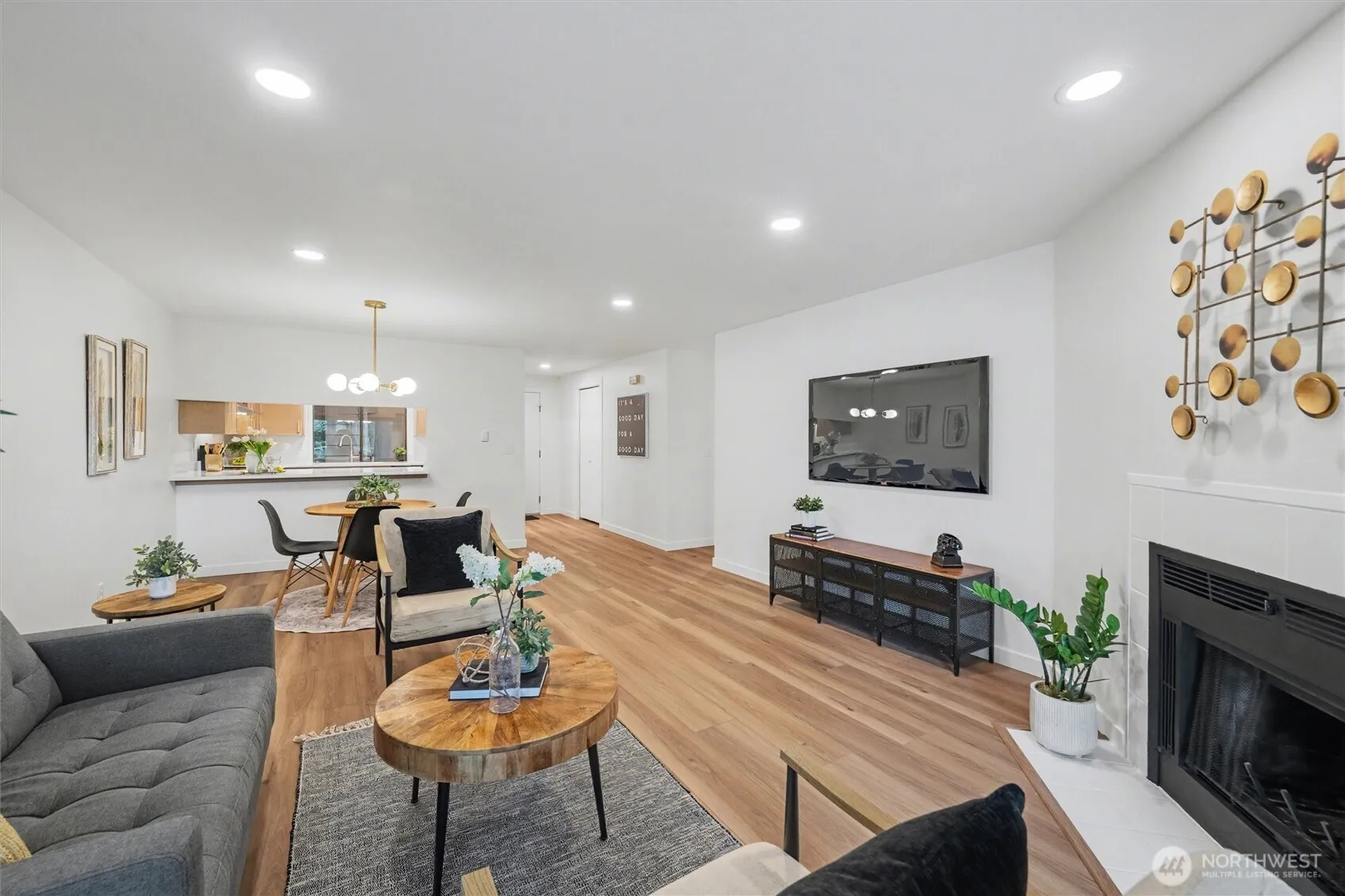 Juanita Beach Remodeled Home–Live the walkable dream in this 2nd-story, freshly remodeled 2BD/2BA, 1,025 sq ft condo next to 22-acre Juanita Beach Park. Brand-new kitchen cabinets, quartz countertops, interior paint, wide-plank flooring, lighting, fixtures & refreshed baths. Spacious primary suite w/double vanity & lg closet. Enjoy outdoor living on the sun-filled, SW-facing oversized deck w/large covered areas—perfect for entertaining, lounging & watching sunsets over Lake Washington. Secured entry & garage w/designated parking spot & storage. Efficient HOA w/new roof 2026 & water heater 2025, w/d. Enjoy the convenience of a walkable community w/easy access to restaurants, shops, recreation & beach—just a couple blocks away. Welcome home.