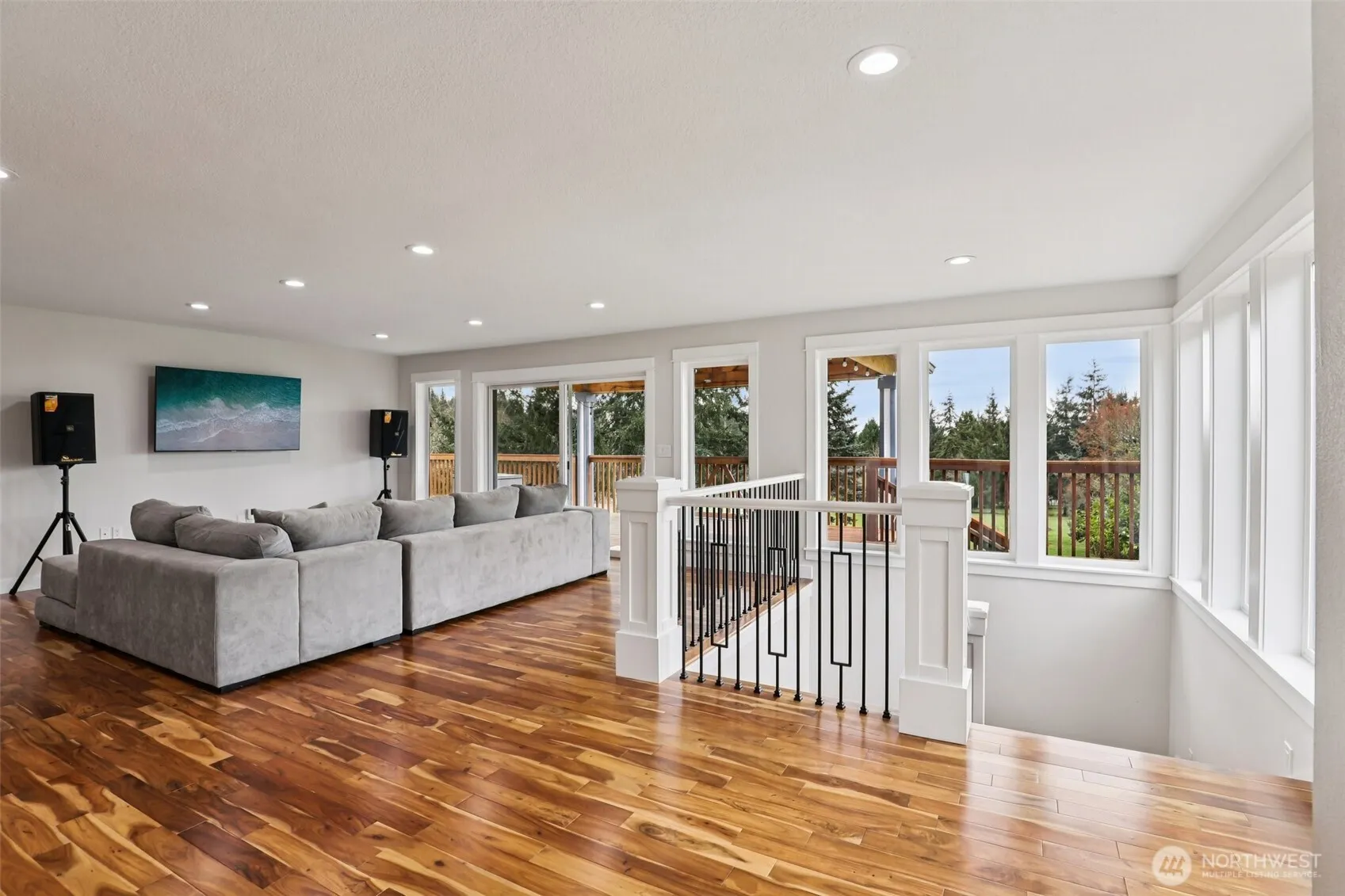 Beautifully designed home. Ideal horse property. 2 tax lots, 7.43 acres. Exceptional space inside and out. Wrap-around deck opens to great room family room, windows frame territorial views, slider to deck, creates seamless indoor-outdoor living. Gourmet stainless kitchen, some Dacor appliances, granite counters, marble tile backsplash, shaker-style soft-close cabinetry, some glass panes and pull-outs, open shelving. Separate dining area. Primary en-suite on main, deck access, walk-in closet, dual sink vanity, frameless marble tiled shower, private water closet. Second bedroom and full bath also on main. Lower level: 2 additional bedrooms, 5th non-conforming bedroom possible media room/office, huge bonus room pre-plumbed for wet bar, slider to covered patio. 2 laundry rooms, one fully equipped on main with granite counters, built-ins, another on lower level pre-plumbed with washer and dryer. Interior: All appliances remain, floating bathroom vanities, granite countertops, hardwood, marble tile, carpet, recessed light, 80-gal hot water heater. Hughes Network internet. Outdoors: wrap-around deck, covered patio, oversized 2-car garage, new Hardi Plank siding, new 50-year roof. Shop approx 1800 sq ft plus 300 sq ft loft, electricity, security lighting, concrete floor, 2 tall garage doors, mechanics service pit. 30×60 pole barn, electricity, security lighting, previously housed five stalls. 4 cross-fenced pastures. Mortgage savings may be available for buyers of this listing.
