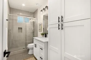 Welcome to this beautiful home. Top notch finishes meet you at the front door and take you thru ought the home. Tall ceilings and tall doors that make it feel even bigger. Quartz on the kitchen counter and the enormous island that can fit everyone around. all tile bathroom and heated floors. Primary bedroom has a personal steam shower great for our PNW weather or after a good workout. Deck in backyard covers you from any rain but the massive skylights let 100% of the sun thru for you to enjoy. Did I mention the ADU? Separate entrance and full size everything, with a 1,000SQFT 2 Bed you can use for yourself or rent out for potential passive income.