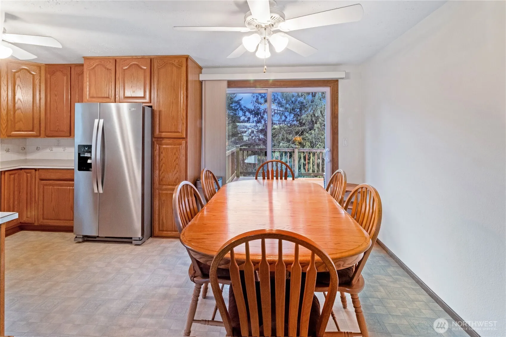 Well-maintained split-level home on a spacious lot in a quiet Lynden neighborhood. This 4-bedroom, 1.75-bath home offers a versatile layout w/ three separate living spaces, providing room to spread out, work from home or create hobby areas. The main level features a bright living room w/ large picture window offering views of Mt. Baker, along w/ a kitchen w/ abundant oak cabinetry, stainless appliances & dining area that opens to the deck overlooking the backyard. Upstairs includes three bedrooms & a full bath. The lower level offers a fourth bedroom, ¾ bath & cozy family room w/ wood stove & brick surround, ideal for relaxing or entertaining. A former third garage bay has been converted into a spacious office or flex room, adding even more usable living space. Outside, enjoy a huge fully fenced backyard w/ mature landscaping, room to garden, play or entertain. The property also includes a 2-car garage & driveway parking. Solid, well cared for & ready for the next owner to update finishes & make it their own in a desirable Lynden location.