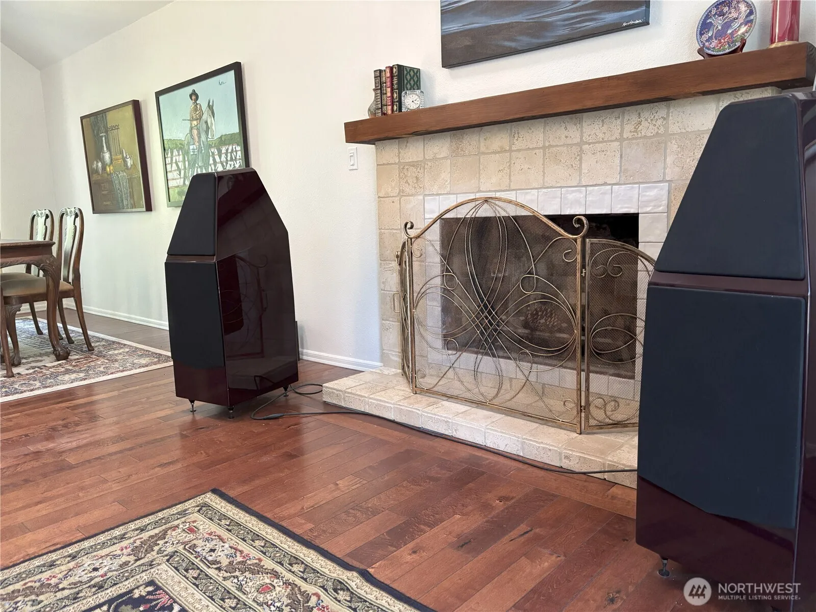 Move right in to this stylish NW Contemporary split w/Dutch gable roof, near shopping & restaurants! 2 suites, one on each floor! Sophisticated upgrades, new oversized Trex entertainment deck. Tile entry, cathedral ceiling in open living room, skylights, & formal dining room, heat pump-A/C. Lodge like engineered hardwood floors. Interior painted 2025, newer front door, upgraded lighting, closet organizers. Beautiful eat-in kitchen has all the bells and whistles, dark cherry tone soft close cabinets, slab granite counters, glass tile splash, gas range, stainless appliances. Dining room & deck overlook park-like fenced yard! Primary suite w/dual closets. A masonry fireplace on each floor. 3 showers! Big garage for workshop. Newer furnace & water heater. Large, corner lot.