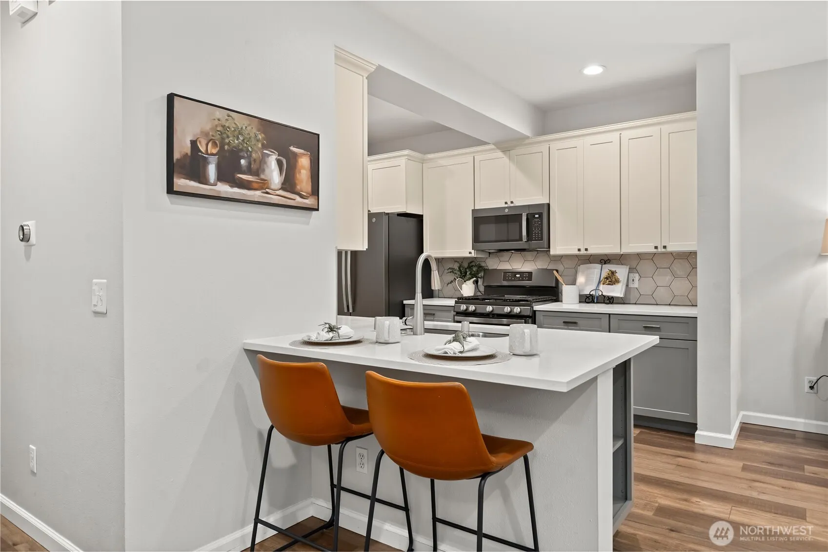 Welcome to this beautifully remodeled townhome in the desirable Parkhaven community of Maple Valley, offering space, style, and an unbeatable location close to the best of the area. This spacious home with a two-car garage provides comfortable living and a rare opportunity to own a home of this size at an approachable price point. The interior has been thoughtfully upgraded, beginning with the fully remodeled kitchen (2022) featuring quartz counters, a designer tile, soft-close cabinetry with pull-out drawers, and newer stainless steel appliances including a gas range. The kitchen flows into the dining and living area, creating an inviting space. Bathrooms were also remodeled in 2022, bringing fresh, modern finishes throughout. Additional improvements in recent years include luxury vinyl plank flooring, newer carpet, a custom laundry -washer and dryer, water heater replacement, and A/C for year-round comfort. Step outside to a private, fully fenced backyard with patio, perfect for relaxing or gardening. The location is exceptional with quick access to Highway 18 and Highway 169. Just a short stroll from the home you’ll find the Cedar River Trail trailhead, providing easy access to Lake Wilderness Park, the Arboretum, library, community center, and miles of scenic trails. Located within the sought-after Tahoma School District, this home offers convenience, comfort, and value.The Parkhaven community is also planning new roofs scheduled for installation in summer 2026.