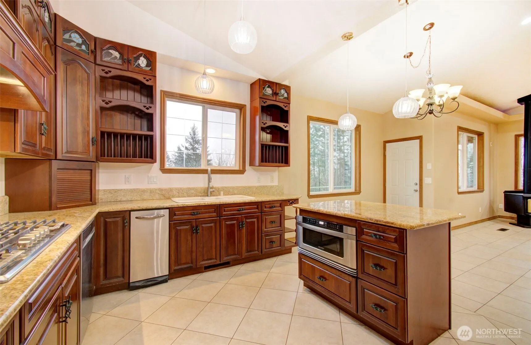 Don’t miss this one! No HOA or CC&R’s. Discover the perfect blend of luxury and country living with this custom daylight ranch set on 5 scenic acres with stunning mountain views. Thoughtfully designed for both everyday comfort and long-term flexibility, this home features radiant heated floors on both levels and a heated garage for year-round convenience. Custom home is 2-Kitchens, 4 Bedrooms, 3 Bathrooms, and 3,401 sq ft. Warm, rustic finishes shine throughout with beautiful knotty pine ceilings and doors, creating a welcoming northwest feel. The versatile lower level is ideal for multi-generational living or guest quarters, complete with a separate entrance, full kitchen, bedroom, bath, and office for a private lifestyle living. 20×24 barn with upper storage & stalls, open pasture space, and water access for livestock. Enjoy a peaceful, self-sustaining lifestyle with mature fruit trees including plum, cherry, apple, and pear. Built with future growth in mind, the property offers 320-amp service ready for a shop plus power and water lines extended throughout the acreage.