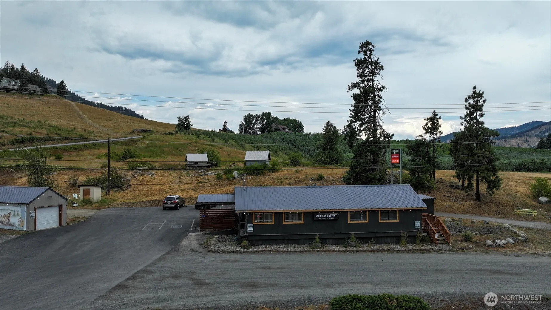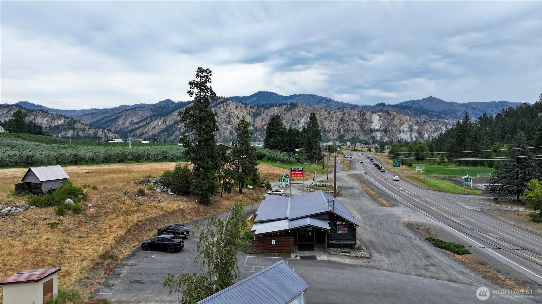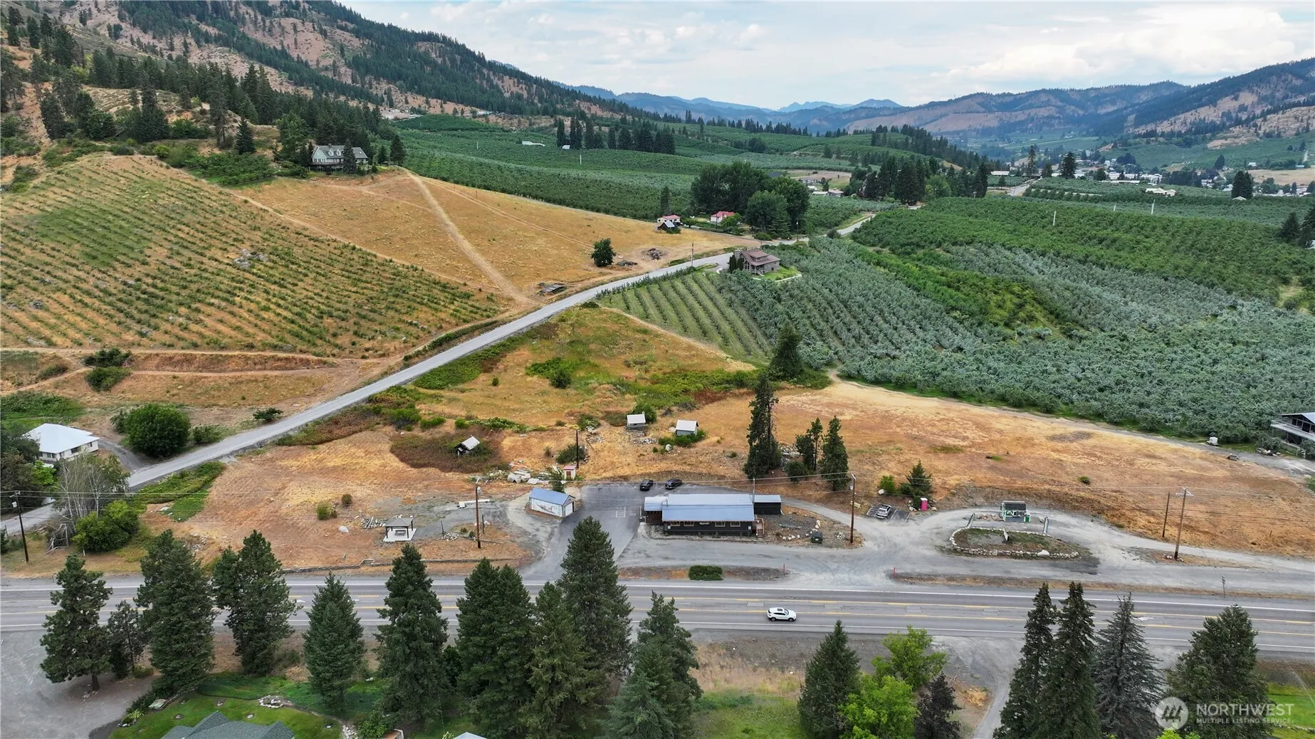 5.11 acre Highway Commercial property near Peshastin, Washington, just 1/2 mile from the intersection of US 2 and US 97, and 4 miles from Leavenworth. Several opportunities for development: RV site; hotel/motel; truck stop; mini-mart, etc. Commercial retail building currently leased for $4,500/mo through September 1 of 2034; Portable coffee stand space leased for $1,500/mo through April 2029. Irrigation water rights. Businesses not included. Highway Commercial zoning allows for no side yard setbacks and no minimum lot size. Offered at $999.999 with partial seller financing.