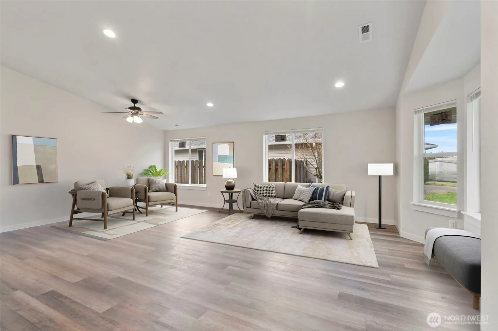 Welcome to 108 Rose Marie Dr. Chehalis a beautifully fully updated, 3 bedroom, 2 bath home with 1,706 sq ft of single level living. Step inside this move in ready home and discover a bright and open concept floor plan featuring skylights and modern neutral tones, elegant waterproof vinyl flooring the, and plush new carpet in the bedrooms. The kitchen is calling with all-new custom cabinets, new appliances, fixtures, and a spacious eating bar that flows seamlessly into the dining and living areas perfect for entertaining. Both bathrooms have been completely remodeled with fresh flooring, new vanities, and fixtures . Enjoy the comfort and efficiency of a brand-new furnace and heat pump for year-round climate control. A sliding glass door leads to an expansive patio ideal for outdoor gatherings, surrounded by a low-maintenance yard with mature landscaping, flowering tees, and a wraparound sidewalk. The finished two car garage offers excellent storage and easy indoor access. Every detail of this home has been chosen for comfort and style. Located just minutes from I-5 and shopping this home is the perfect blend between quality, convenience, and small-town charm in a quiet, establish community of Holloway Springs!
