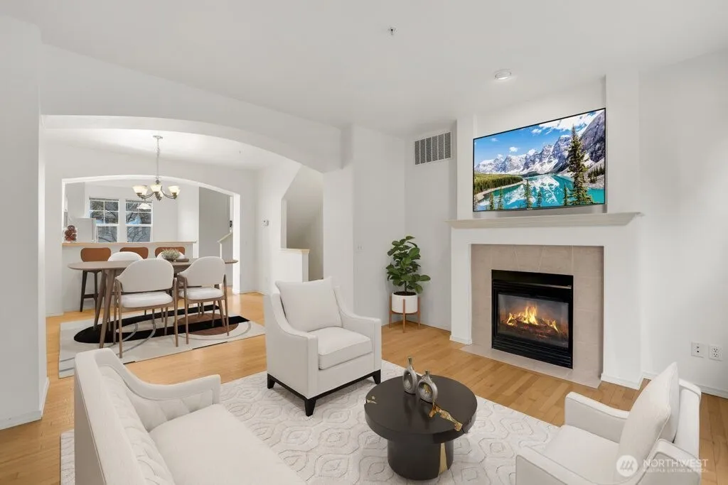 PRICED to SELL – Below Market Value!! Welcome to this beautiful townhome in the well-maintained, quiet & gated community of The Meadows. You will love this bright 2-bedroom, 2.5-bath home featuring soaring 9-ft ceilings with abundant natural light. Open main level with gorgeous hardwood floors, a spacious chef’s kitchen with center island, arched dining & living room with cozy gas fireplace. Enjoy the wall of windows overlooking your Private patio surrounded by greenery. Upstairs includes two primary suites, each with private baths and lots of storage space! Features brand new carpet. Fresh interior paint in kitchen, dining room, and primary bedroom & bath. Upgrades include: New water heater and garbage disposal, new primary bath flooring and bathtub. Attached tandem 2-car garage plus guest parking. Washer, dryer, and all appliances are included, making this truly move-in ready. New roof (2023). Extremely peaceful with no neighbors behind – just a lovely view! Next to Green River trail and Van Doren’s Landing park. Close to everything- Link light rail, Sounder, I-5 & 167. Minutes from SeaTac, Southcenter, Amazon fulfillment center, and Boeing. Mortgage savings may be available for buyers of this listing.