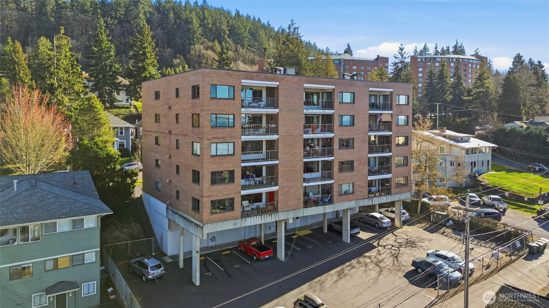 Prime top-floor living w/ glorious bay, island, mountain, harbor & city views from this 2-bedroom, 1.75-bath, 1,432 sqft Garden Towers condo. Located in a secure community with 15 units, it features an elevator from covered parking to your front door. Tasteful updates throughout including newer appliances, and new interior paint, carpet, electrical fixtures and more! Living room and dining room have large windows that showcase the expansive views. The spacious living room includes a corner gas fireplace, and the primary bedroom has an ensuite bath. The covered deck (with motorized sun shade and storage closet) is perfect for relaxing and entertaining while enjoying spectacular sunsets. Personal storage unit assigned (approx. 15 x 6 feet with shelving), 2 assigned parking spaces and a large, shared community workshop. Close to WWU, Sehome Arboretum, trails, public transportation and downtown Bellingham.