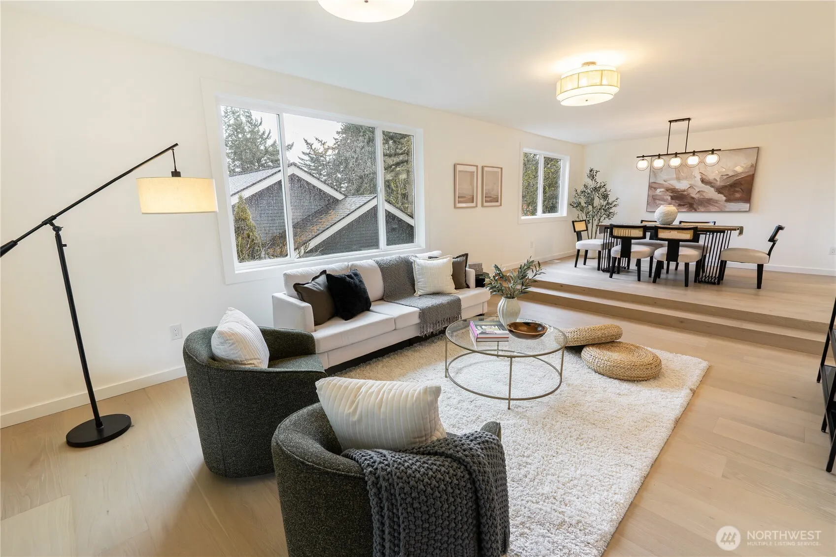 A unique opportunity to own a beautifully updated home in Bellevue’s sought after Tam o’Shanter Golf & Country Club. Located on a quiet cul-de-sac and backing up to a greenbelt, this peaceful setting offers privacy and a wonderful Lake Sammamish & Cascade Mountain view. The home is lovely, featuring double primary suites, generous bedroom and office spaces, and lots of room for guests. The stunning, spacious kitchen is a chef’s or host’s dream, centered seamlessly between living, dining and family rooms. Enjoy beautiful new flooring, windows, doors, lighting and so much more. The main primary suite is huge, with a gorgeous 5-piece bath and walk-in closet featuring 2nd washer/dryer setup. The private, fully fenced backyard is perfect for BBQ, campfire and relaxation. Finally, the private Tam o’Shanter HOA perks include unlimited golf access, a clubhouse with restaurant, pool, tennis/pickleball courts, playground and pro shop. The home, the setting, the club, the location…this may be the opportunity you’ve been waiting for. Don’t wait, come visit today.